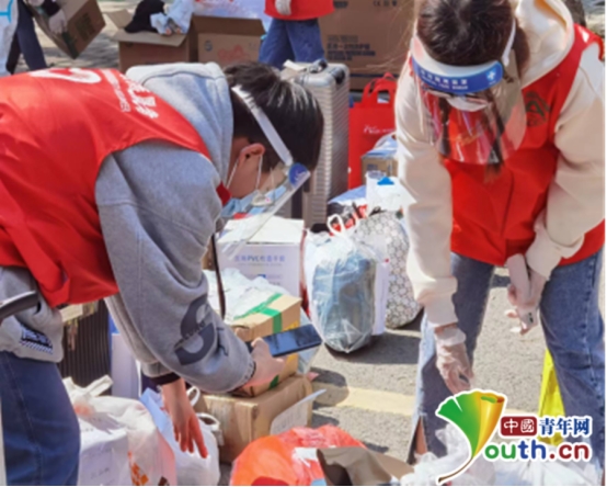 志愿者开展外送物品转运工作。东北农业大学团委供图