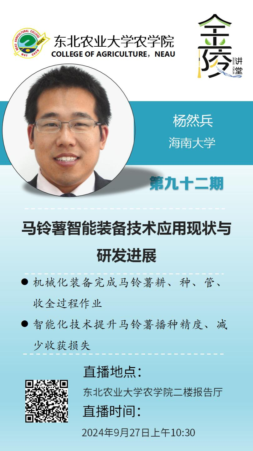 报告题目:马铃薯智能装备技术应用现状与研发进展