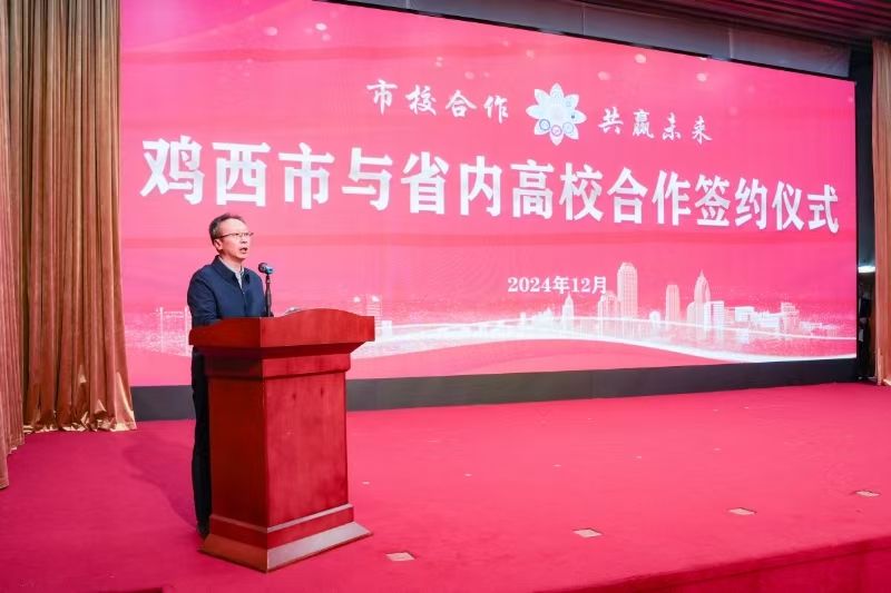 鲁长友代表市委、市政府向省委教育工委、省委组织部和8所省内高校各位领导的到来表示诚挚欢迎,向长期以来对鸡西高质量发展给与的关心、支持和帮助表示衷心感谢。他表示,鸡西正处于转型发展的关键时期,聚力打造龙江“智谷”“碳谷”,迫切需要智力支持、人才支撑。他希望,鸡西市与各高校共谋智库建设之新策,用智慧之光点亮鸡西大地,用科创之力点燃发展激情。共商科技创新之新径,发展以高技术、高效能、高质量为特征的生产力。共闯产业振兴之新路,合力培育和发展新质生产力。共开人才引育之新局,开创人才辈出、人尽其才的良好局面。共绘社会发展之新篇,助力幸福鸡西建设。鸡西市将以最大诚意落实协议,以最高效率促进合作,以最好服务强化保障,用“双向奔赴”创造美好未来,用“双向赋能”谱写精彩华章。