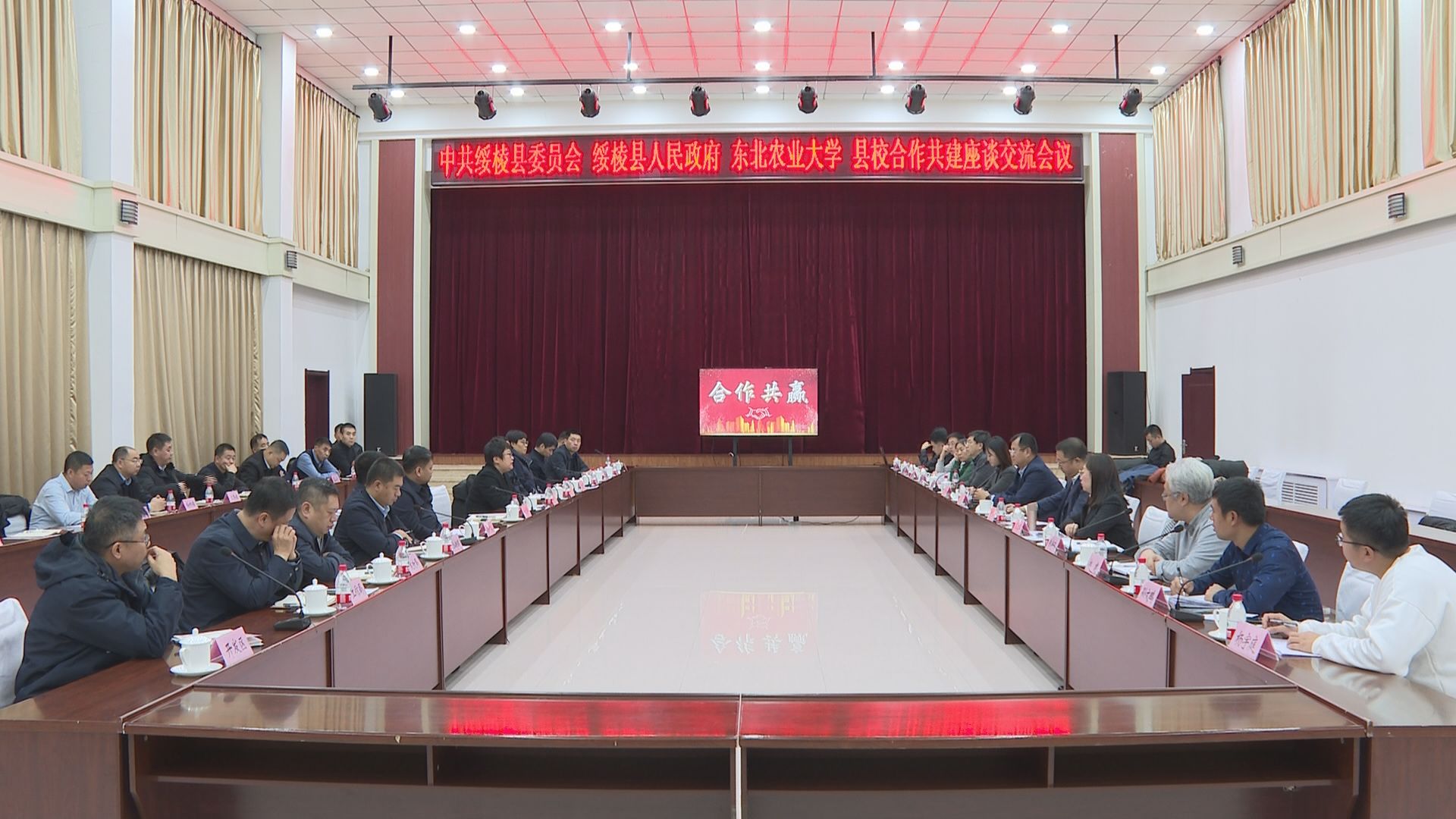 12月7日下午,东北农业大学与绥棱县人民政府在绥棱县政府礼堂二楼会议室举行县校合作共建座谈会。我校社会合作与成果转化中心(新农村发展研究院)主任(院长)朱志猛,社会合作与成果转化中心(新农村发展研究院)副主任(副院长)李其林,校团委(创新创业中心)副书记焦文静,工程学院副院长王立军,园艺园林学院教授霍俊伟、经济管理学院副教授赵建,绥棱县委副书记、县长赵辉,县委副书记刘剑利,县委常委、副县长刘志宇、潘忠亮,县委常委、组织部部长张纪韬,县政府副县长周爱莹、冷德明,相关县直单位负责人及各乡镇党委书记参加座谈会。座谈会由刘剑利主持。