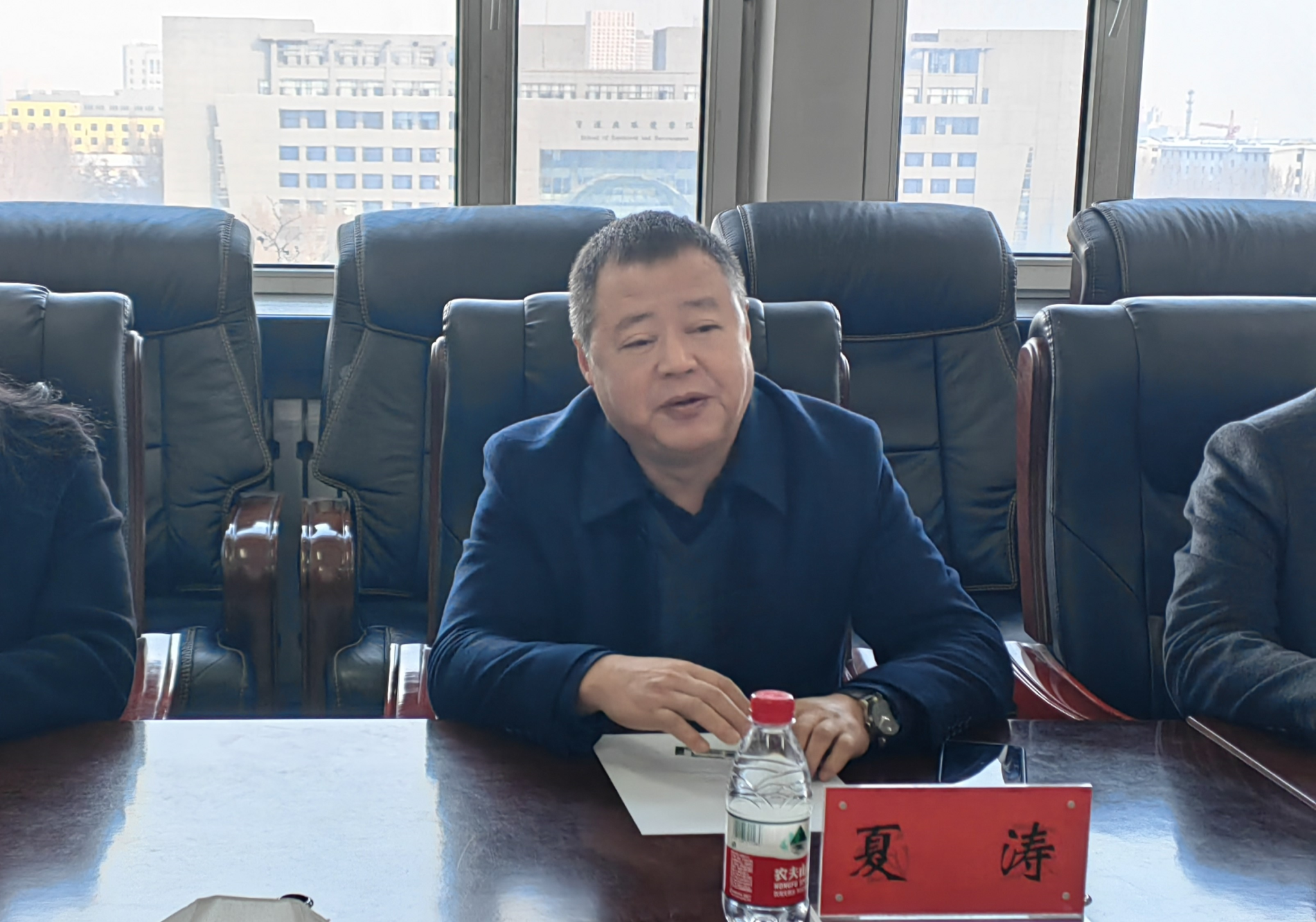 为深入贯彻落实党的二十大提出的“加快建设农业强国”的战略部署,全面学习贯彻习近平总书记在视察黑龙江期间提出的“把发展农业科技放在更加突出的位置”的重要指示精神,12月5日,塔河县工商联主席夏涛,大兴安岭益康野生食品加工有限责任公司总经理喻在林,大兴安岭绿森林食品有限公司总经理马丽英及黑龙江建通工程公司经理康金生一行4人到东北农业大学就深化校县、校企合作开展对接座谈,东北农业大学党委副书记贺景平,社会合作与成果转化中心(新农村发展研究院)主任(院长)朱志猛,食品学院教授张秀玲,社会合作与成果转化中心(新农村发展研究院)副研究员徐文龙,动物科学技术学院副教授狄生伟及相关工作人员出席座谈会。会议由朱志猛主持。