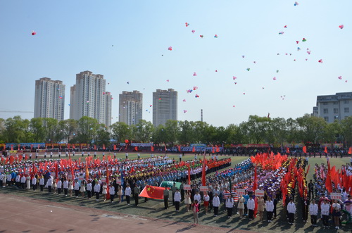 在庄严的国歌声中,五星红旗徐徐升起,升旗仪式后校体育运动委员会主任、副校长郭翔宇致开幕词,他指出了发展体育运动对社会发展和人类进步的重要意义,强调实现中华民族伟大复兴的中国梦和中国体育强国梦息息相关,他对过去我校在各级各类体育赛事上取得的成绩表示肯定,并指出本届运动会对推动我校体育教学改革、提高运动竞技水平、提高学生综合素质、促进精神文明建设和和构建和谐校园有着积极的重要影响,他希望全体裁判员、运动员和工作人员各谋其事、各展所长,希望全体师生员工尽情享受运动的快乐,充分展示干事创业、团结奋进的特色工作,希望同学们通过本次运动会进一步提高思想意识,热爱体育运动,养成体育运动的习惯,为实现中华民族伟大复兴的中国梦贡献力量。