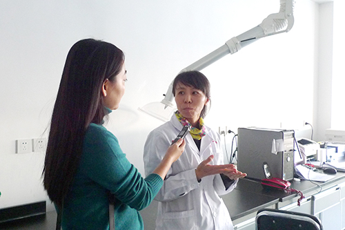 仪器一室主任亢美娟接受记者采访