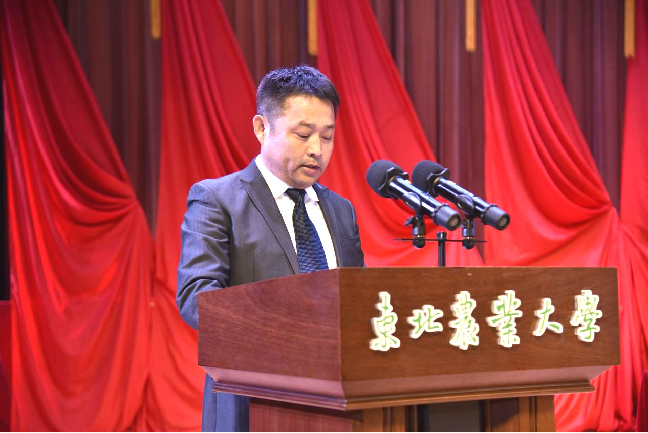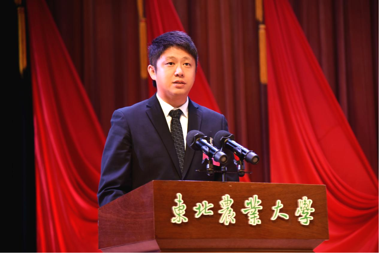 兄弟院校代表、东北林业大学团委书记李晶才致辞。他代表各兄弟院校向大会的召开表示热烈的祝贺。他表示,近年来东北农业大学团委深入推进团学改革,在组织建设等多个领域均走在全省高校前列,特别是在大学生创新创业工作方面取得佳绩,为龙江大学生创新创业工作作出了重要贡献。东农与东林同根同源、血脉相连,农林两家团委更是守望相助、齐心协力,希望在共青团大家庭里,两校精诚合作、共同发展,以昂扬的姿态奋力书写着龙江共青团工作高质量发展的精彩篇章。