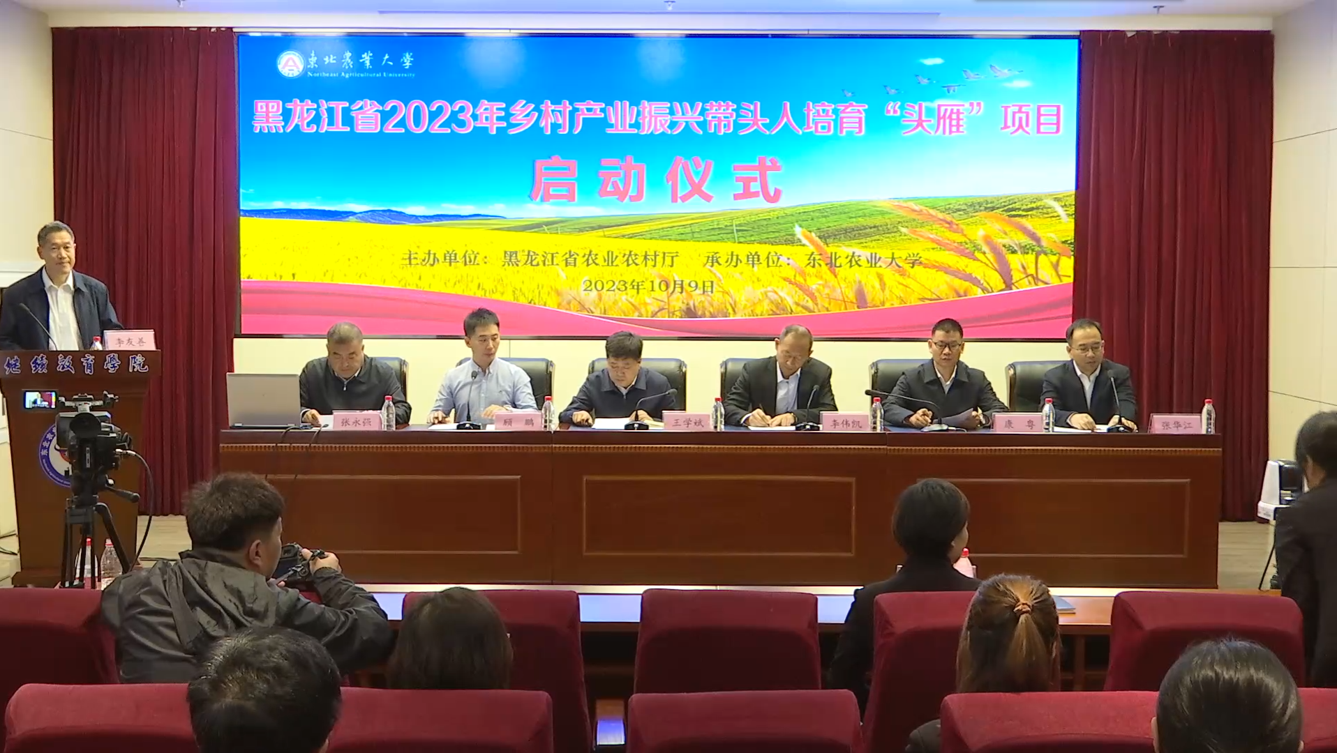 10月9日,黑龙江省2023年乡村产业振兴带头人培育“头雁”项目启动仪式在东北农业大学继续教育学院举行。2023年全省头雁项目全体学员共计600人参会。农业农村部人力资源开发中心教育培训处副处长顾鹏,黑龙江省农业农村厅副厅长王学斌、人事处处长康粤,我校副校长李伟凯,教务处处长张永强、继续教育学院党委书记李友善、食品学院食品科学与工程系主任张华江教授出席会议。省农业农村厅相关工作人员、东北农业大学相关工作人员、学员代表等参加会议。启动大会采取线上线下相结合的方式召开。会议主会场设在东北农业大学,分会场分别设在黑龙江八一农垦大学、黑龙江农业工程职业学院。分会场院校领导和部门负责人出席了分会场会议。主会场会议由李友善主持。