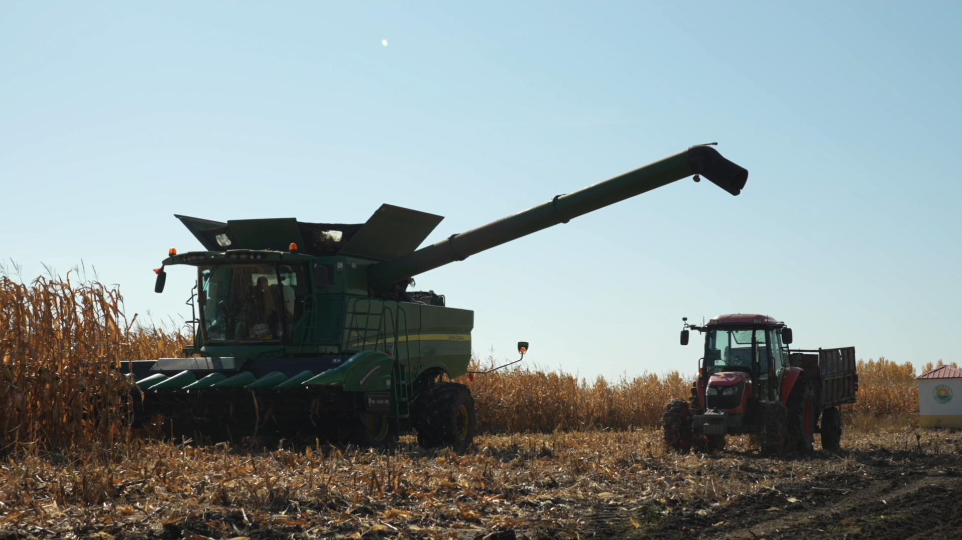 玉米有人驾驶收获机和无人驾驶运粮车协同作业展示