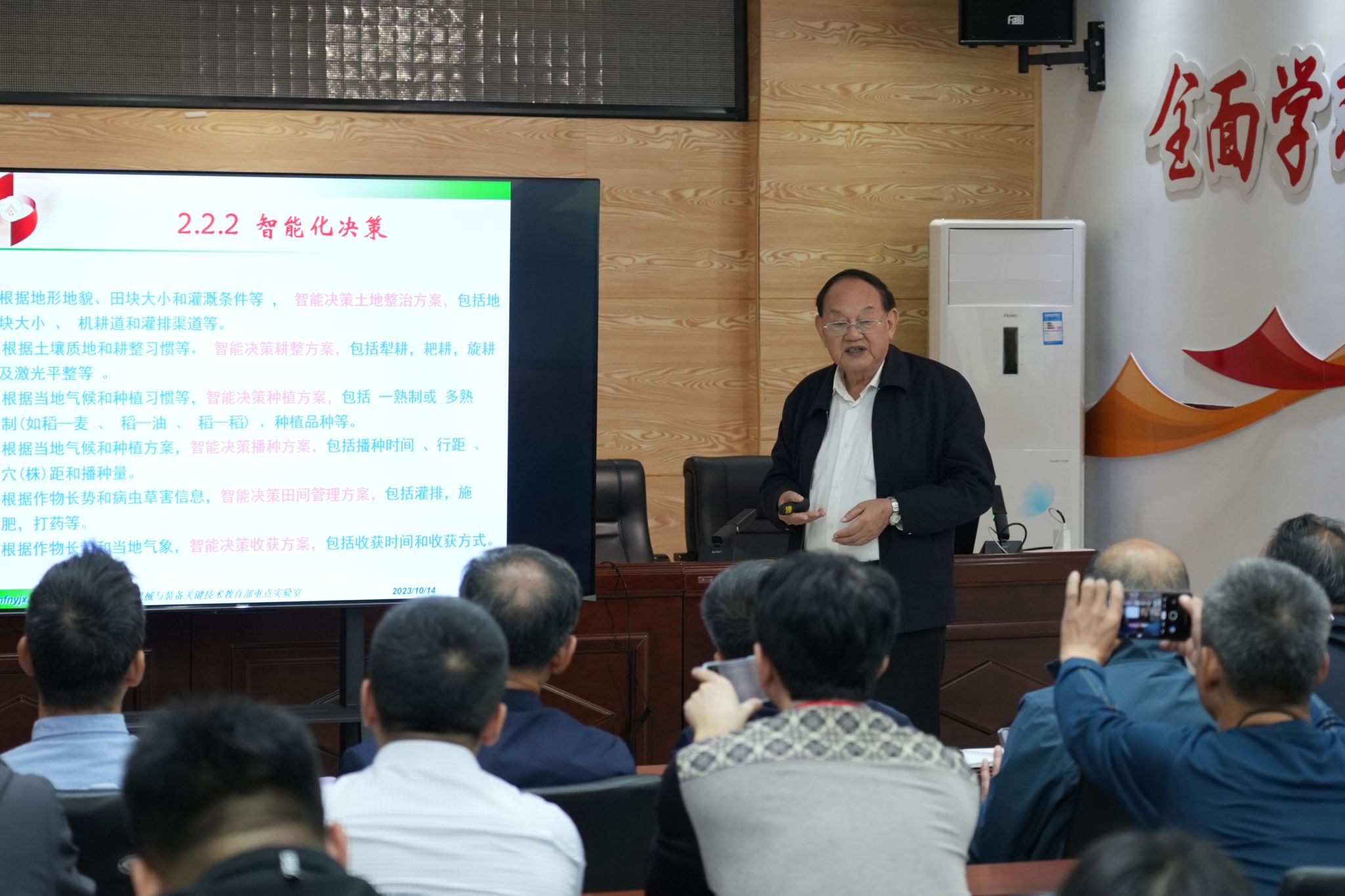 农机演示结束后,罗锡文院士作题为《无人农场建设》的专题报告。他指出,数字农业是未来农业的发展方向,是依托生物技术、智能农机和信息技术从而实现数字化感知、智能化决策、精准化作业和智慧化管理四大功能的现代化农业生产方式;以数字技术和智能农机支撑的数字农业,是现代农业的高级形式;“无人农场”是实现数字农业的重要途径,是现代农业的发展方向。