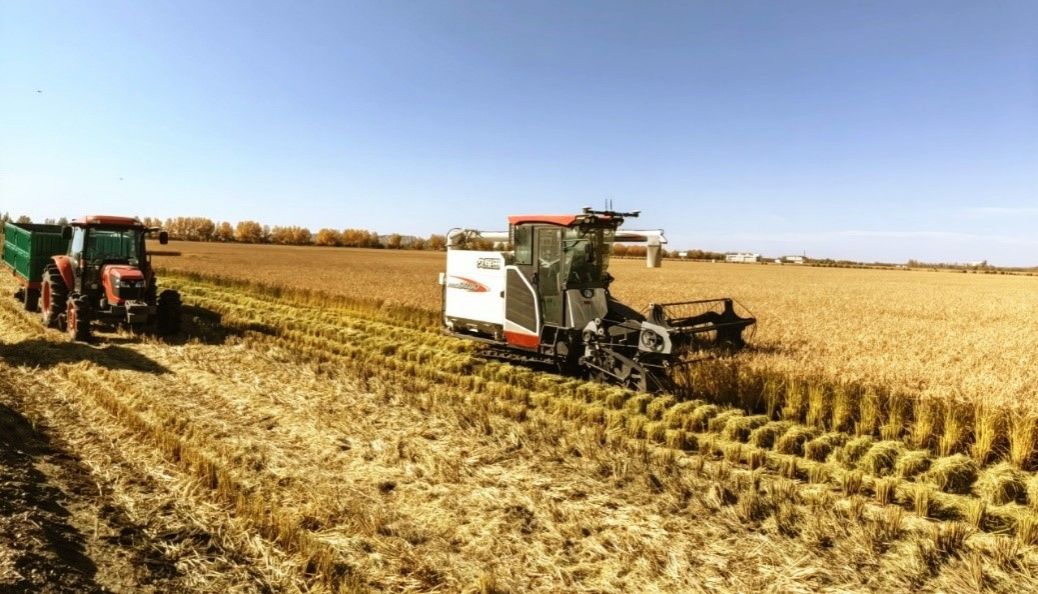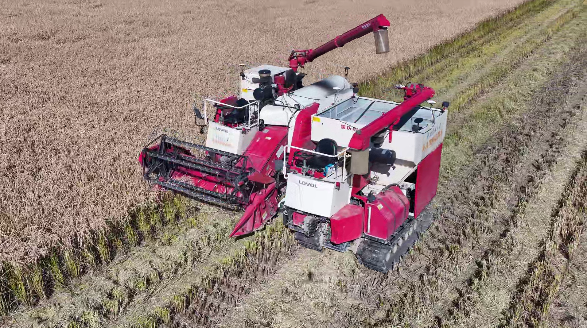 水稻无人驾驶收获机和无人驾驶运粮车跟随式协同作业展示