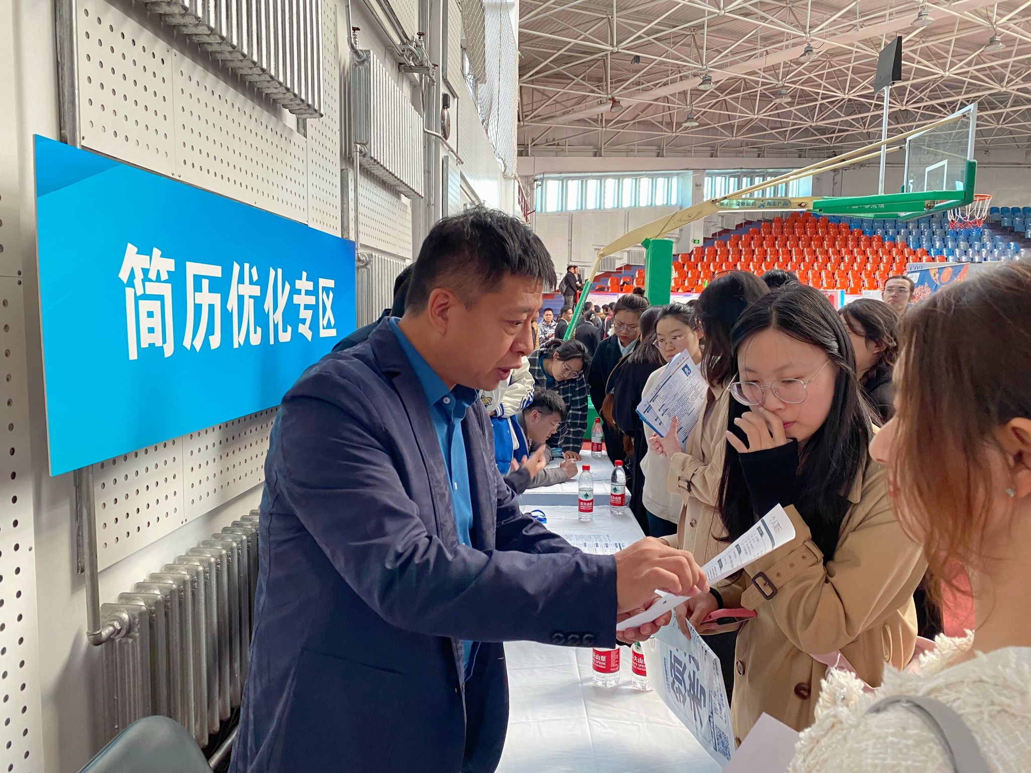 会场设置了“简历优化专区”和“简历打印服务专区”,由学校简历优化实验室教师为学生提供“一对一”指导服务,全方位精细化保障学生顺利求职。此外,会场内设置“访企拓岗促就业洽谈专区”,推动各学院与用人单位进一步在实习实践、人才培养、校园招聘等方面开展合作洽谈。