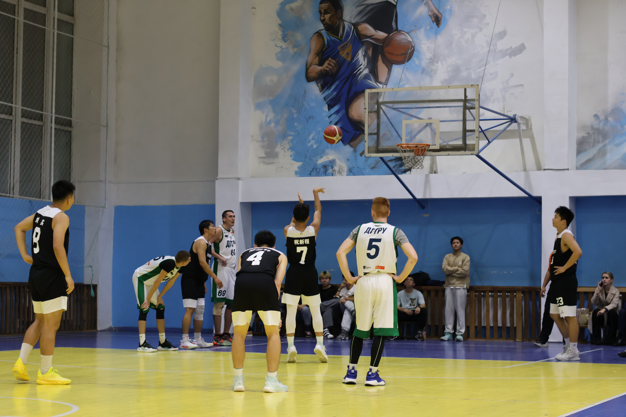 学校男篮与远东国立技术水产大学男篮比赛现场