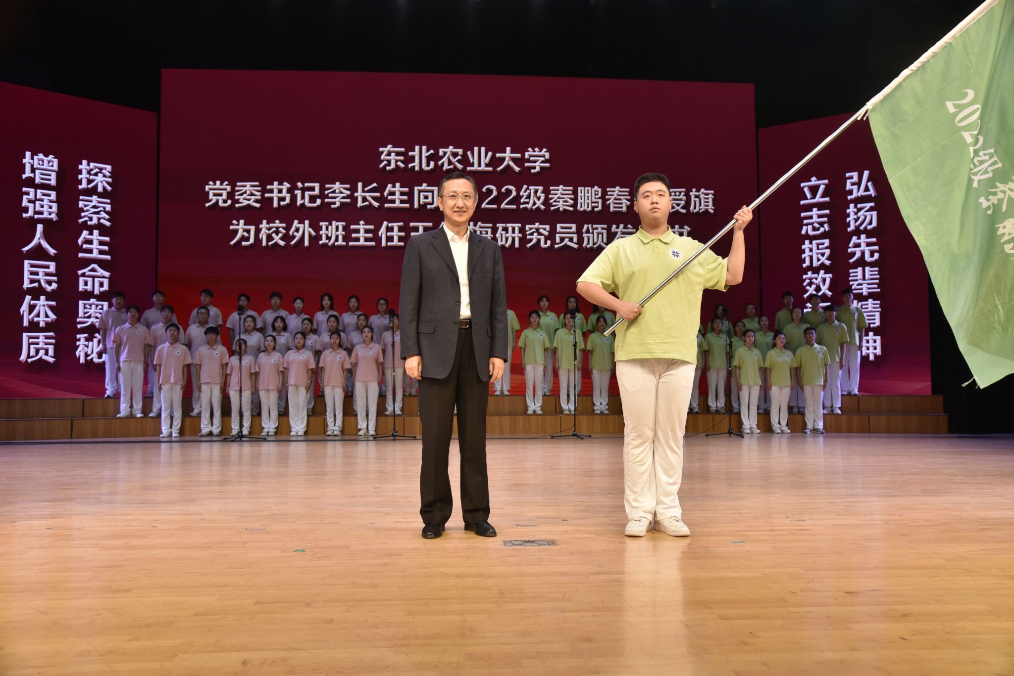 李长生为2022级秦鹏春班授旗