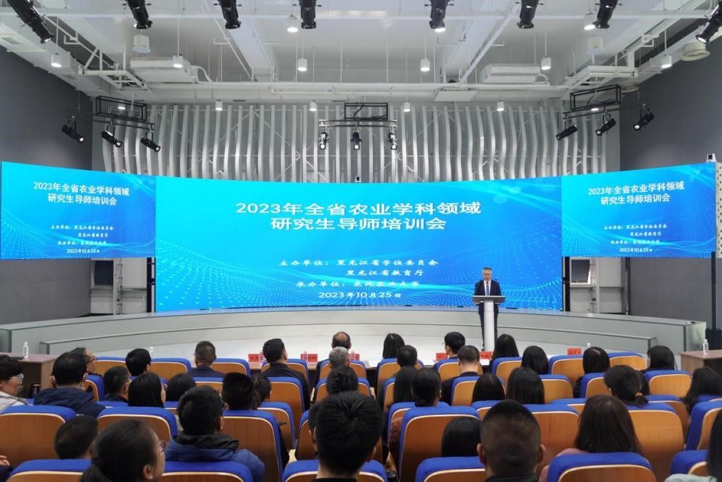 10月25日上午,由黑龙江省学位委员会、黑龙江省教育厅主办,东北农业大学承办的2023年度全省农业学科领域研究生导师培训会在我校成功举行。省教育厅副厅长、党组成员程爽,我校副校长李伟凯,省教育厅学位管理与研究生教育处处长、省学位委员会办公室主任于涛出席开幕式。学校各学院负责人和2022年新晋研究生导师现场参加了会议,来自哈尔滨工业大学、哈尔滨工程大学、东北林业大学、黑龙江大学、哈尔滨商业大学、哈尔滨师范大学、黑龙江八一农垦大学、佳木斯大学、齐齐哈尔大学等省内多所高校及我校农业学科领域研究生导师共计2260人次收看会议直播。培训会议由研究生院院长刘世英主持。