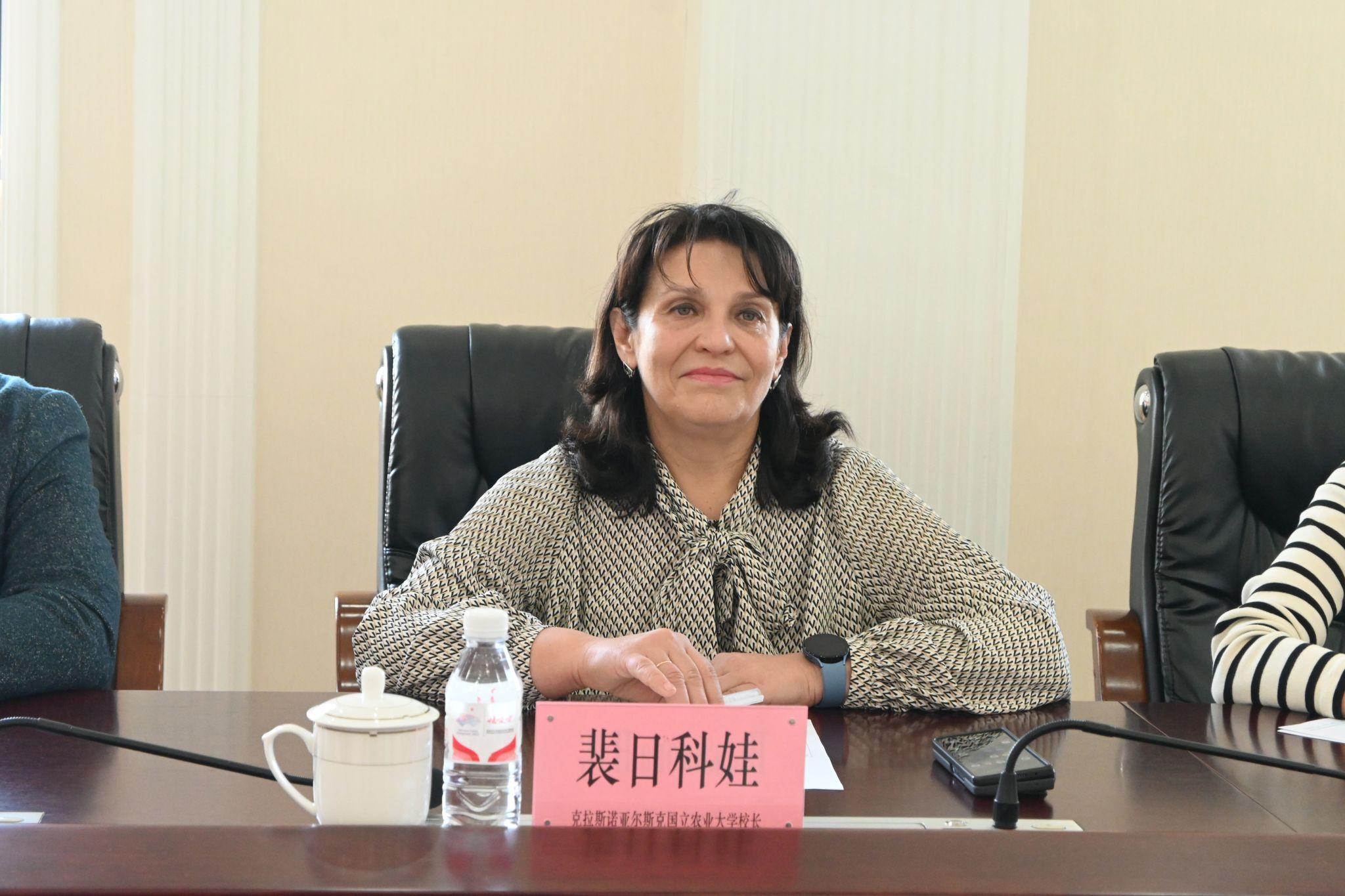 10月25日上午,俄罗斯克拉斯诺亚尔斯克国立农业大学校长裴日科娃·娜塔莉亚·伊万诺夫娜、战略发展和实践教学副校长阿杰洛娃·马琳娜·格阿尔基洛夫娜、科研副校长克罗美奇耶夫·亚历山大·弗拉基米罗维奇一行3人访问东北农业大学。校长付强在主楼604会议室会见了代表团,植保学院副院长程晓非、食品学院教授李杨参会,会议由国际交流合作处处长卢铁光主持。