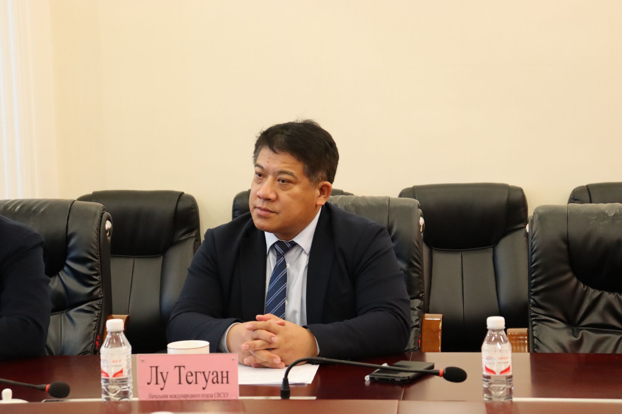 付强对代表团的来访表示热烈欢迎。他表示,德米特里耶夫此次访问我校是对东北农业大学代表团于今年10月访问伊尔库茨克国立农业大学的回访,对于发展两校合作关系具有重大的意义。德米特里耶夫在讲话中感谢我校邀请伊尔库茨克国立农业大学代表团访问东北农业大学,并参加2023国际产学研用合作会议(哈尔滨)以及中俄寒地农业大学联盟成立仪式。他表示,东北农业大学承办的2023国际产学研用合作会议(哈尔滨)获得中外嘉宾的一致赞许,充分展现了东北农业大学国际化水平,希望双方携手前行,推动两校以及中俄寒地农业大学联盟高质量的合作与发展。双方还就进一步扩大互派学生和教师规模,在土壤保护与修复和动物医学等相关领域开展务实科研合作等问题交换了意见,并达成一致共识。