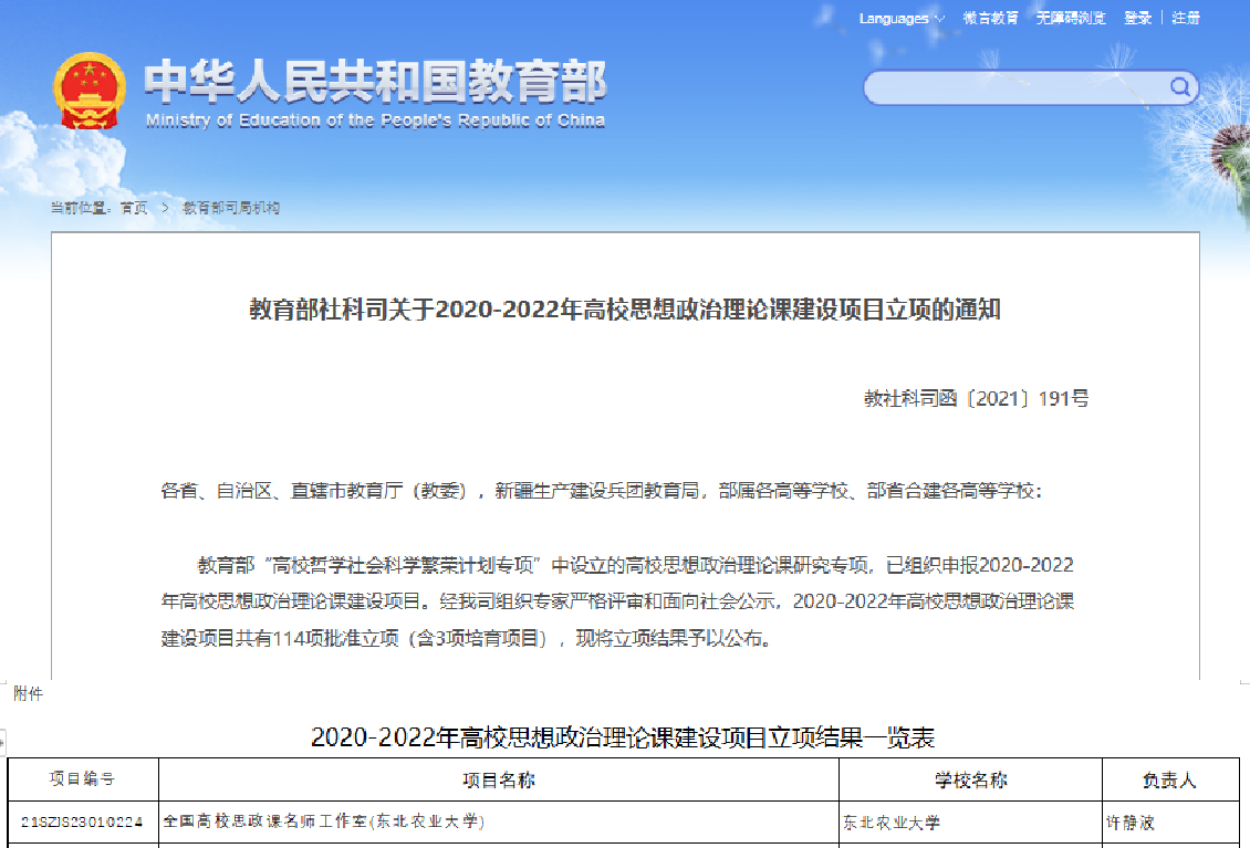许静波负责的思政课名师工作室项目获批全国思政课名师工作室