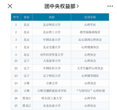 东北农业大学大学生心理协会入选团中央权益部直接联系、跟踪培养社团