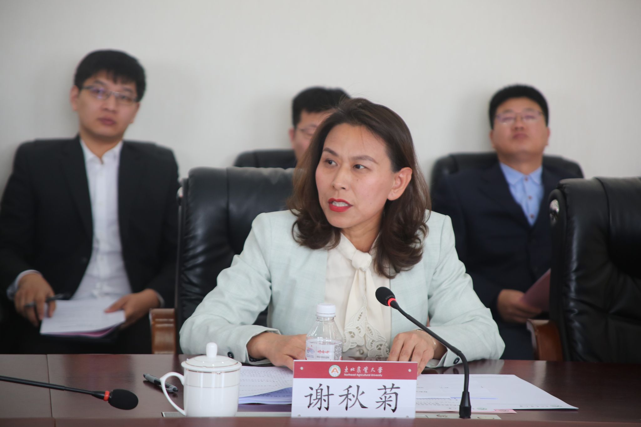 会上,贺丽琪宣读了《关于同意成立农工党东北农业大学支部委员会的批复》。高放介绍了委员候选人情况。大会选举产生了第一届农工党东北农业大学支部委员会委员、主任委员、副主任委员。谢秋菊当选为主任委员,郭惠秋当选为副主任委员,徐荻秋、郑书朋为委员。