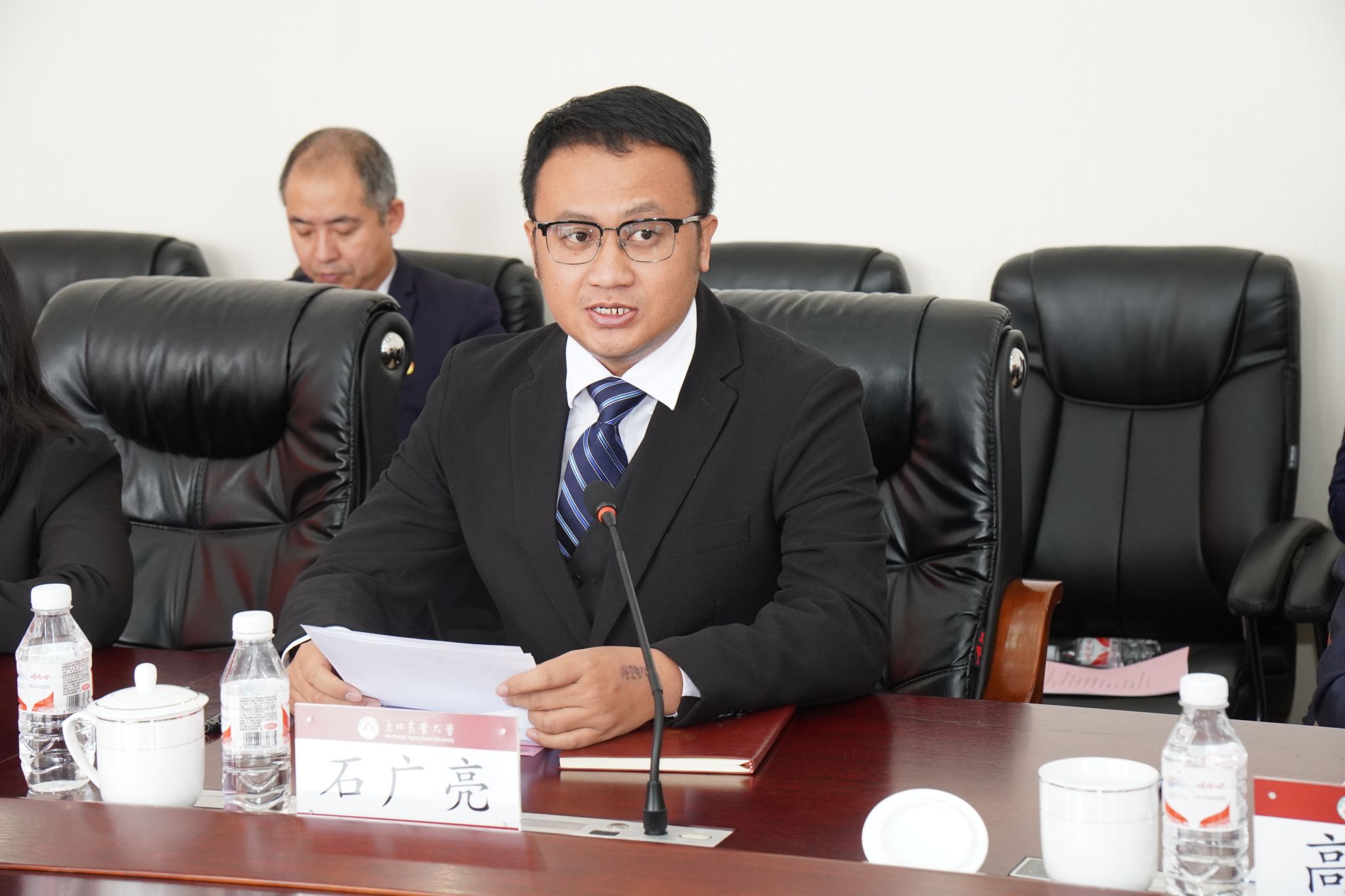 石广亮代表兄弟民主党派致辞。他代表民进东北农业大学支部向农工党东北农业大学支部成立表示了热烈祝贺,向学校党委长期以来对民主党派工作的关心和支持表示感谢。他表示,在中共的全面领导下,民进支部将与农工党支部及其他兄弟党派紧密合作,携手并进,共同深入学习习近平总书记治国理政新理念、新思想、新战略,进一步增强使命感,与中国共产党同心同德、同向同力,为我校高水平大学建设建诤言,献良策,出实力,为更好服务黑龙江省中心工作,振兴东北的美好蓝图、奋力谱写中国式现代化的龙江新篇章贡献民主党派的智慧和力量。
