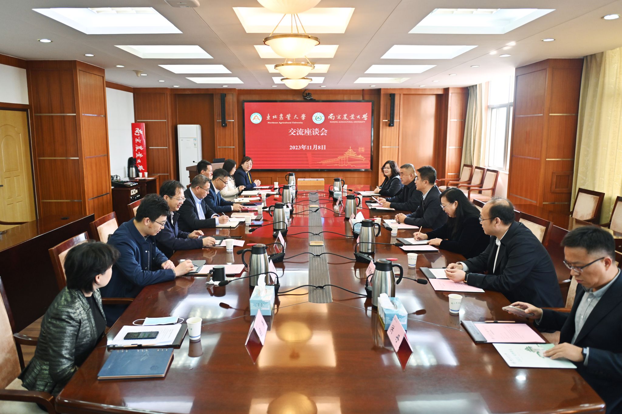 8日,在南京农业大学贺景平一行同南京农业大学副校长董维春、学校校长办公室、党委宣传部、图书馆(文化遗产部)、党委研究生工作部、发展规划与政策研究处、教务处负责同志以及《南农简史》通识课程任课教师代表进行座谈交流。