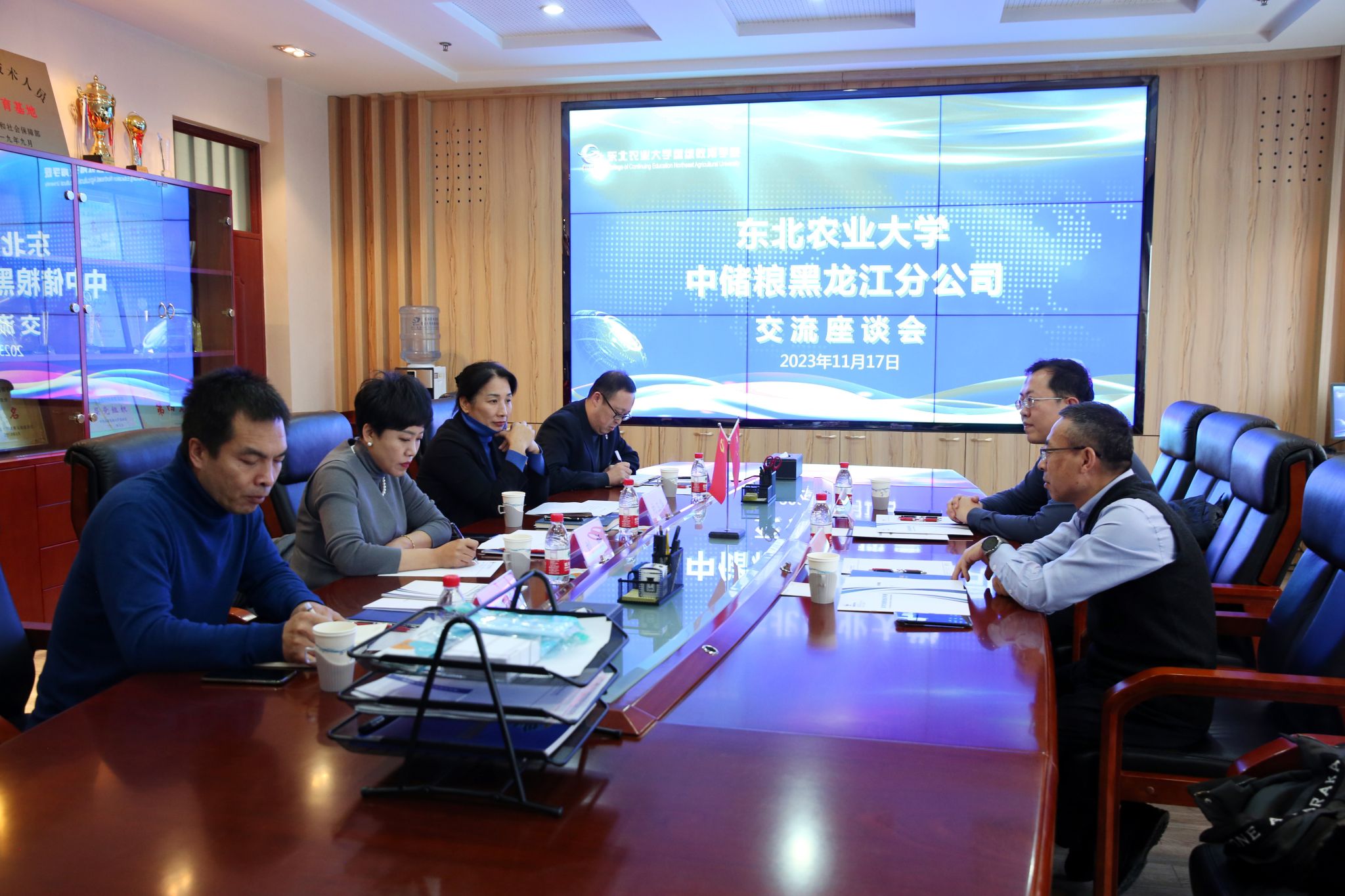 郭辅军处长回顾了中储粮黑龙江分公司与东北农业大学之间深厚的合作交流历史,介绍了中储粮黑龙江分公司的基本情况,他表示,东北农业大学继续教育办学理念新颖、多措并举、成效显著,希望能够持续加强联系,实现资源及平台共享,积极促进校企双方开展长足合作、携手发展共赢。