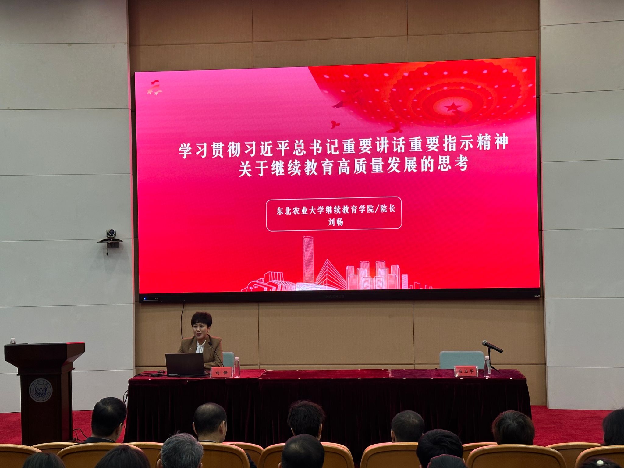 刘畅代表承办单位介绍了东北农业大学基本情况与办学优势,分享了我校多年来开展继续教育的办学理念与特色经验。她表示,东北农业大学作为以农科为优势的“211工程”重点建设大学和世界一流学科建设高校,将以“构建终身教育体系,服务于学习型社会”为办学宗旨,不断推进继续教育多元化办学体系建设,实现继续教育提质转型与高质量内涵式发展。