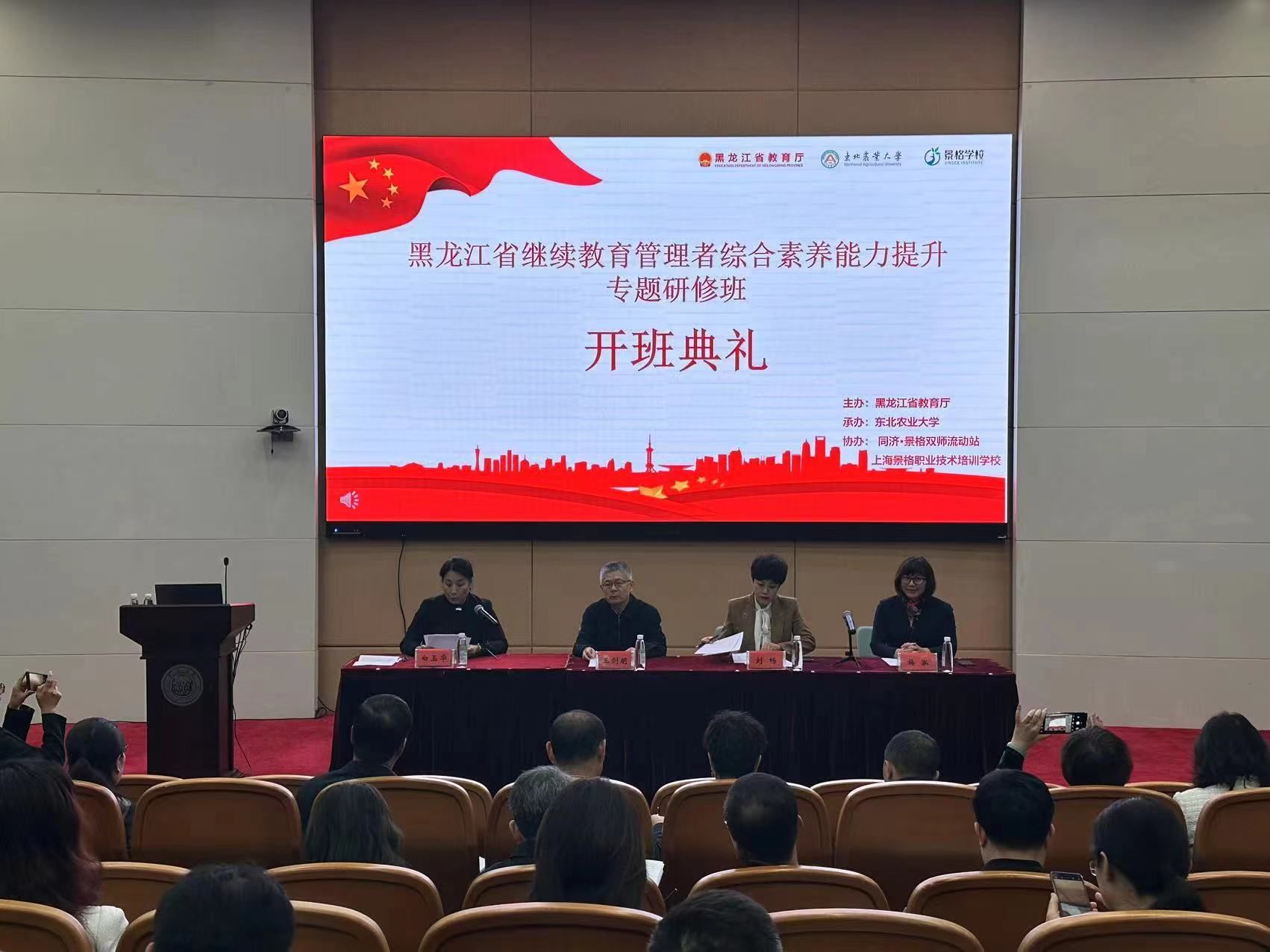 11月25日上午,由黑龙江省教育厅主办,东北农业大学承办的黑龙江省继续教育管理者综合素质能力提升专题研修班暨全省高校继续教育学院院长培训班开班典礼在上海同济大学举办。黑龙江省教育厅职业与成人教育处二级调研员王剑明、东北农业大学继续教育学院院长刘畅、同济大学职业技术教育学院培训部主任梅泓及全省54所高校近80余名代表参加本次培训。会议由东北农业大学继续教育学院副院长白玉华主持。