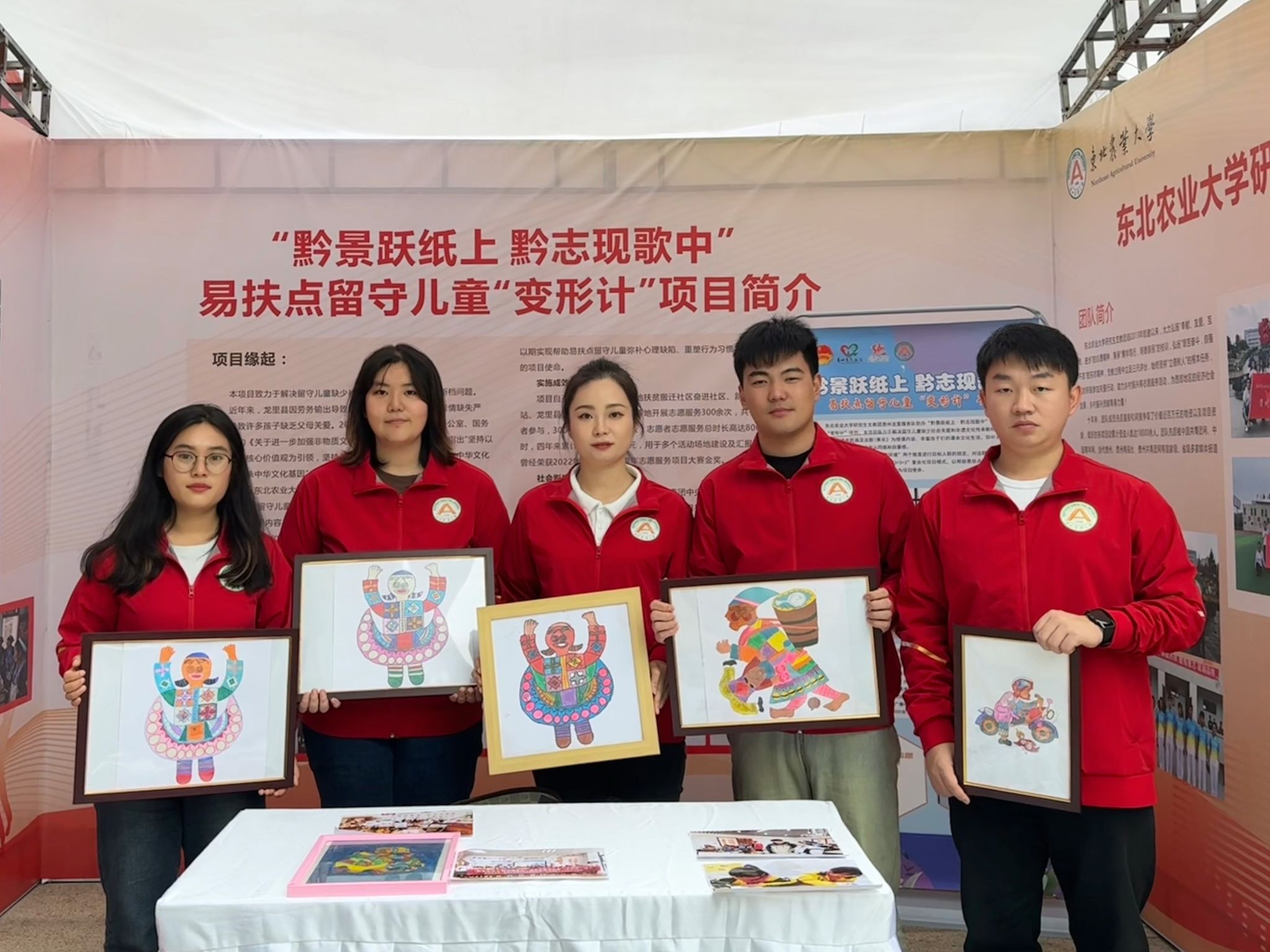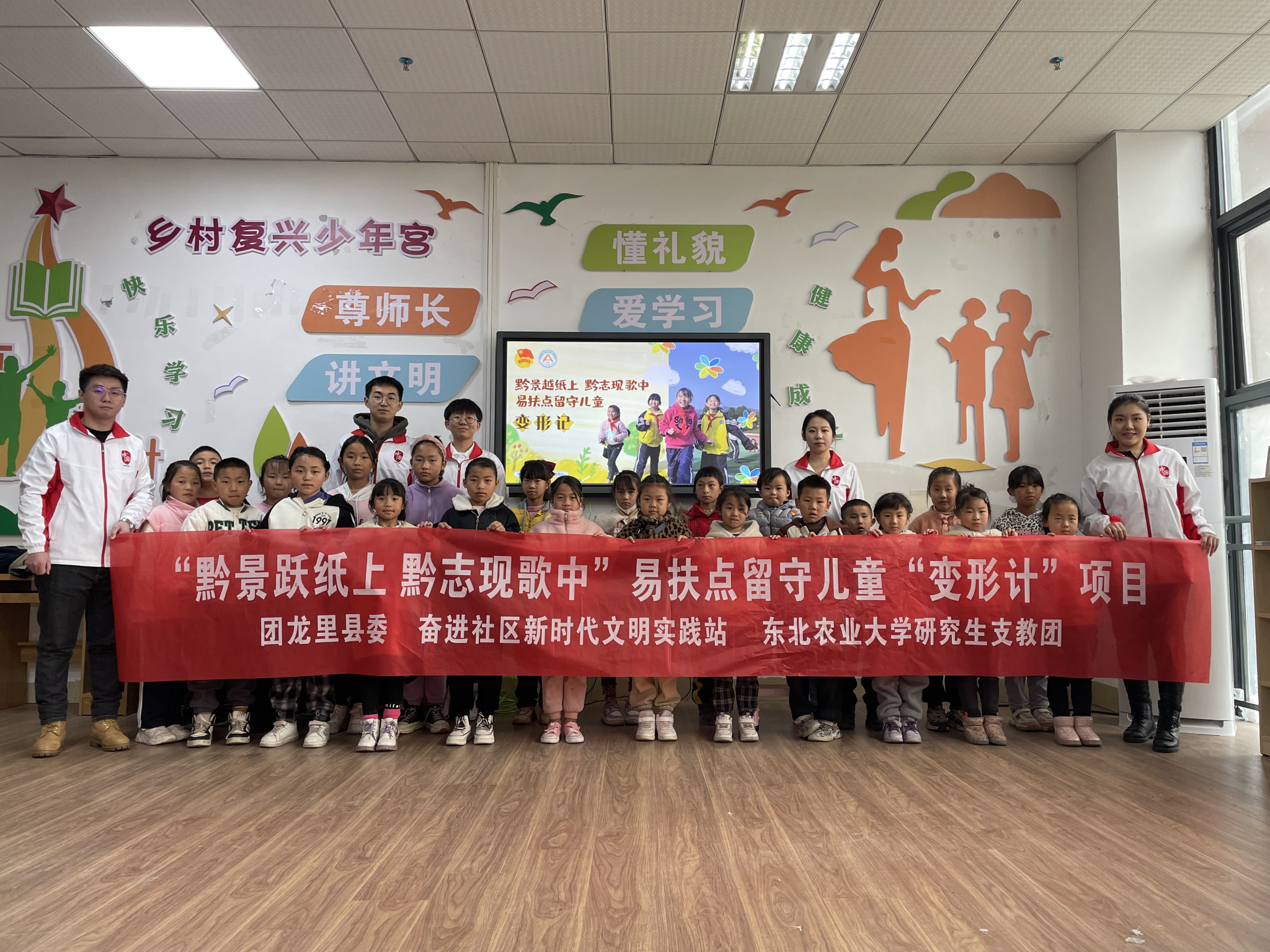 2018年,由校团委指导研究生支教团结合服务地贵州省黔南布依族苗族自治州龙里县易地搬迁扶贫留守儿童实际情况及留守儿童特点设立了“黔景跃纸上 黔志现歌中”易扶点留守儿童“变形计”志愿服务项目。该项目现已持续开展六年,累计36名研究生支教团志愿者爱心接力参与到活动中。项目积极响应国家关爱留守困境儿童号召,服务当地留守儿童,切实关注易地扶贫与搬迁地区教育问题,结合“地理位置—易地扶贫搬迁点”“目标人群—家庭留守儿童”两个维度精准识别服务对象,对近年来出现的特殊群体需求进行分析,将阶段目标细分为弥补心理缺陷、重塑行为习惯和摆脱融入困境,将每一阶段活动形式与意义目标有效融合。在易地扶贫搬迁点中小学设立公益课堂课后辅导,开展多个特色子项目,以教育扶贫助力乡村振兴,以实际行动为孩子们播撒阳光,播种梦想。