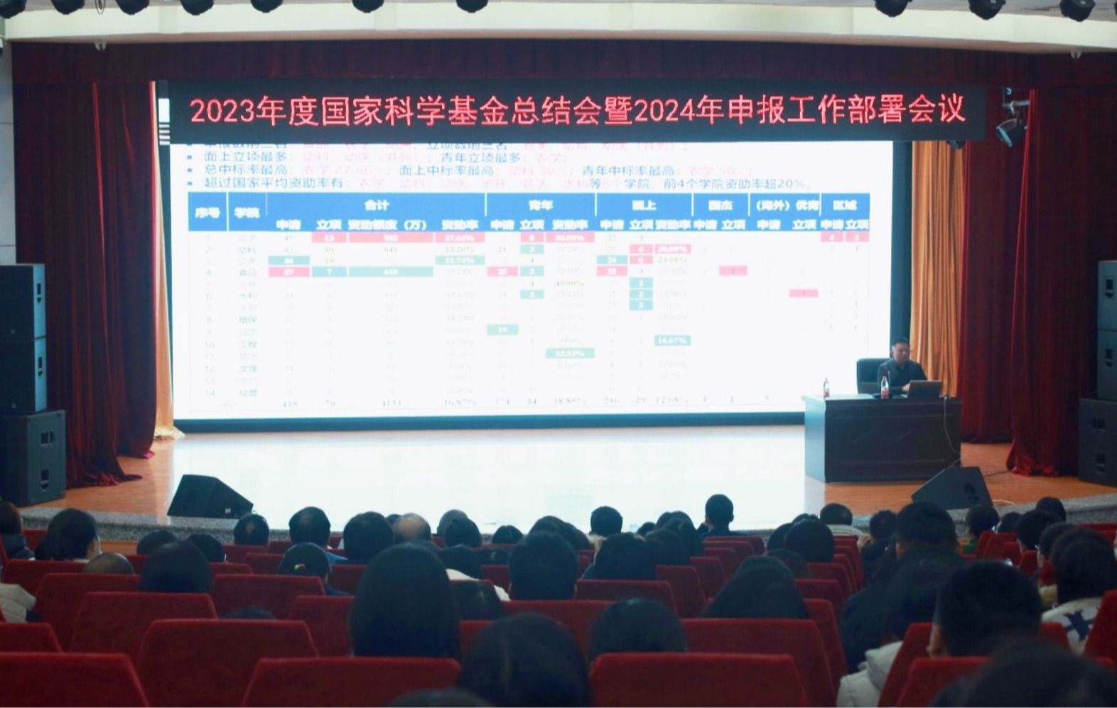 康立功在会议上作了题为《2023国家自然科学基金工作总结及2024年度申报工作安排》报告。他从国家基金委2023年总体情况,学校2023年国家基金申请立项情况,国家基金申报面临形势及存在问题等方面进行了总结分析。并通报了学校2024年国家基金申请的工作重点及具体日程安排。