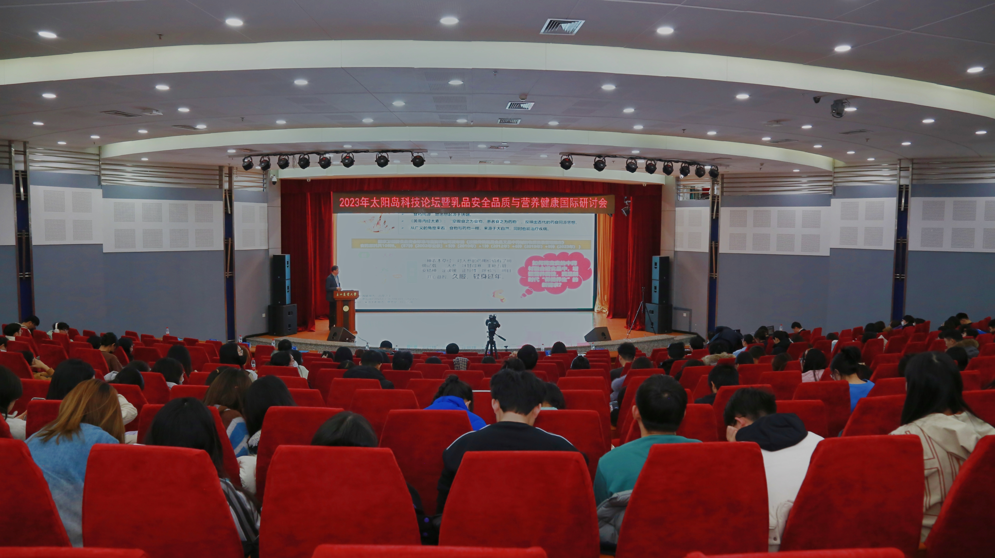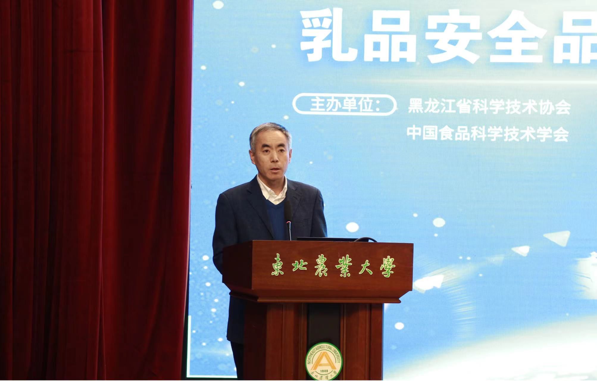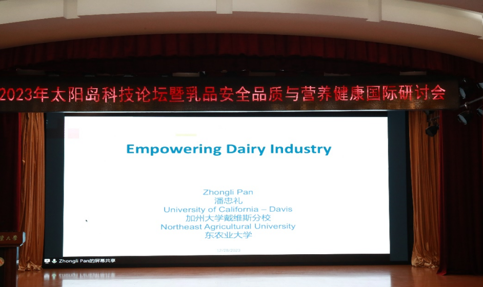 12月28日,由黑龙江省科学技术协会和中国食品科学技术学会主办,东北农业大学食品学院、乳品科学教育部重点实验室、中国乳品工业杂志社、国家乳业技术创新中心乳品安全与品质研究中心承办的“2023年太阳岛科技论坛暨乳品安全品质与营养健康国际研讨会”在东北农业大学召开。中国食品科学技术学会常务副理事长邵薇、黑龙江省科学技术协会学会部部长吕强以视频方式致辞,东北农业大学副校长孙占峰,科学技术处处长寇胜利,食品学院党委书记潘俊波,食品学院院长、乳品科学教育部重点实验室主任姜毓君,食品学院副院长李良以及乳品科学教育部重点实验室全体师生和食品学院师生代表出席论坛。论坛开幕式由姜毓君主持。论坛采用线下与线上同步直播相结合的方式举行。