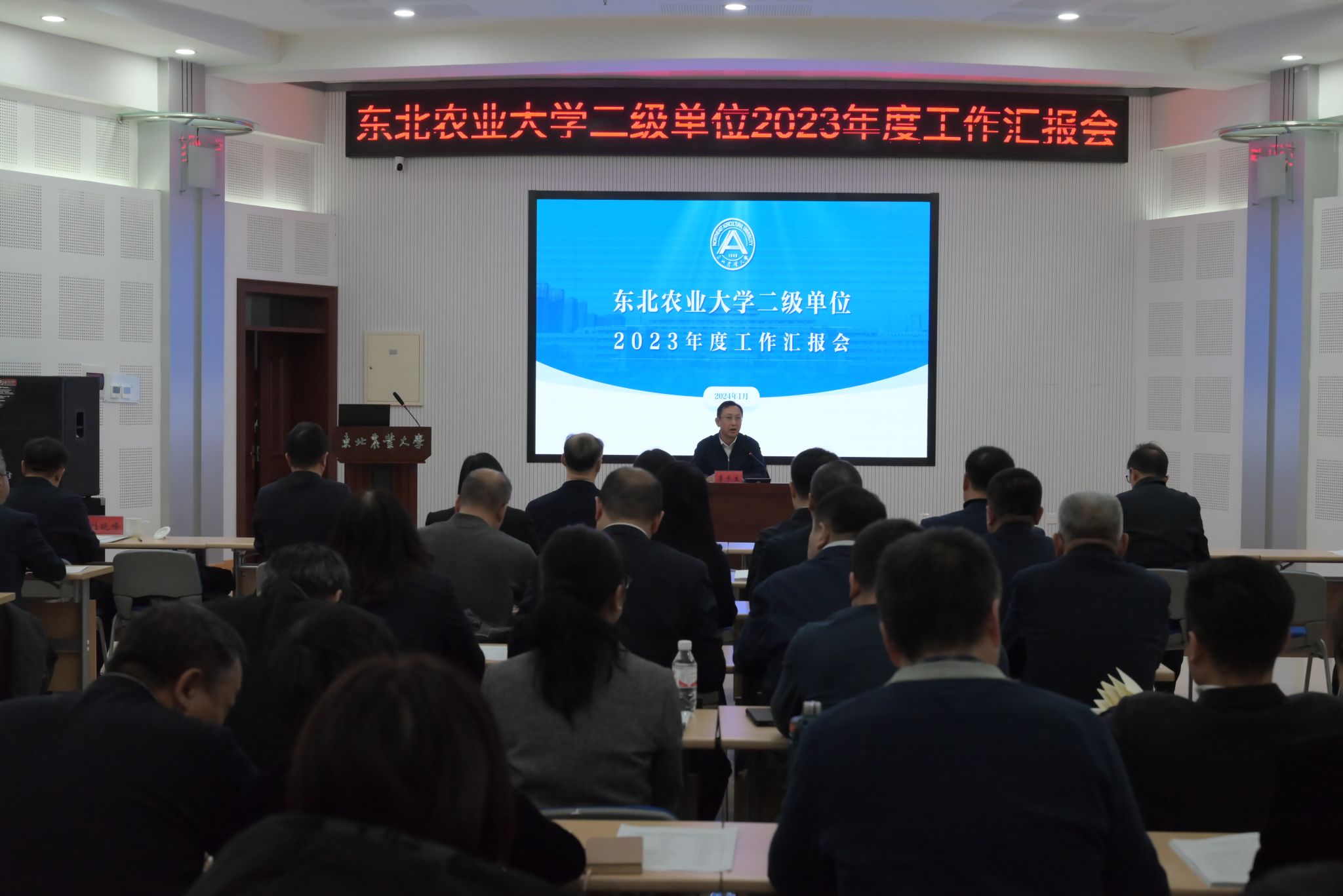 会上,学校 47 个二级单位负责人从 2023 年开展的主要工作、存在的主要问题和不足、2024 年工作打算以及对学校的意见建议四个方面逐一进行了工作汇报。