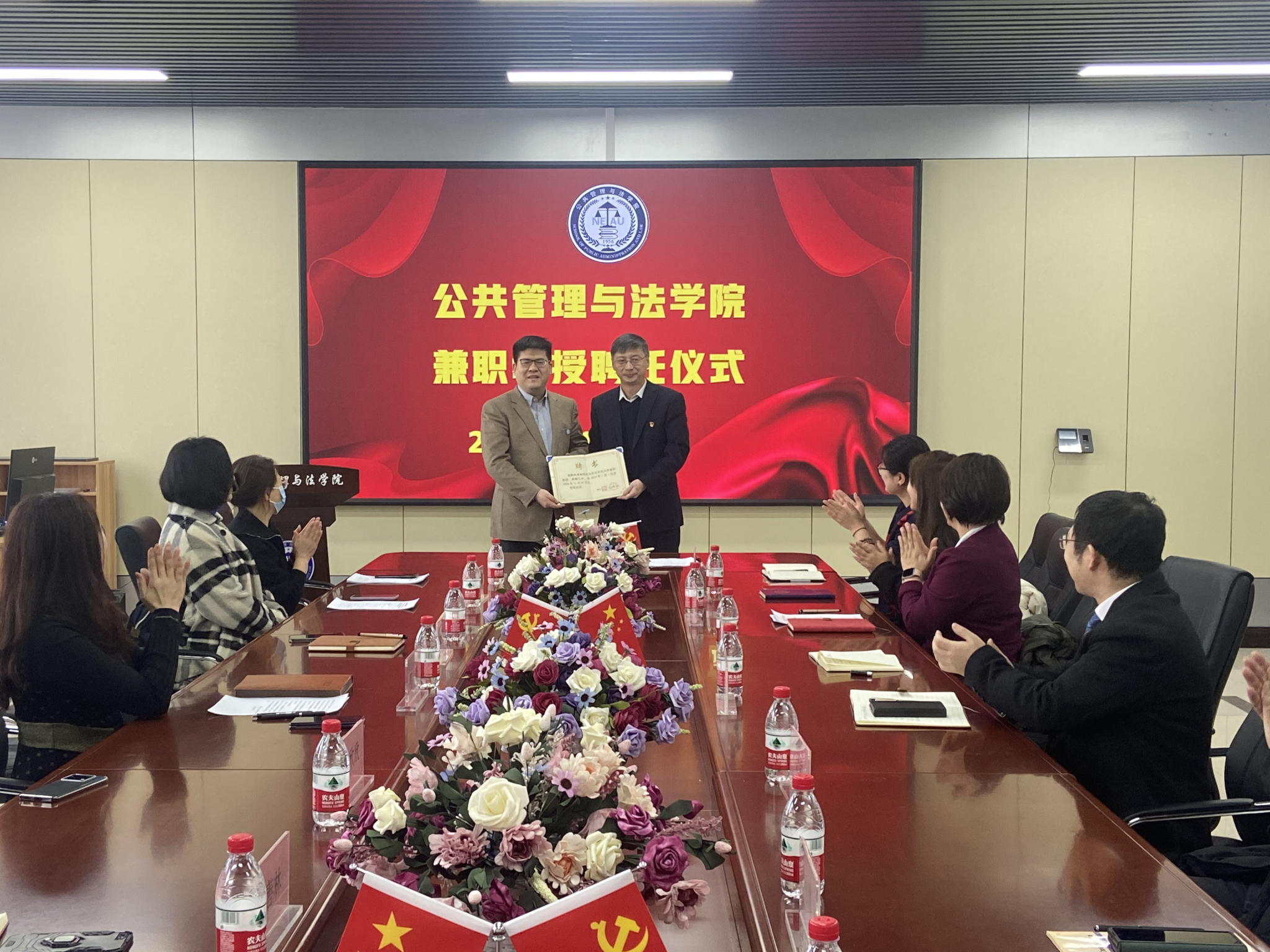 1月9日,东北农业大学举办兼职教授聘任仪式。中国农业大学人文与发展学院教授、国家级人才计划项目入选者、国家社科基金重大项目首席专家臧雷振教授,东北农业大学人事处副处长黄嘉鑫,公共管理与法学院党委书记闫清波、院长杜国明、副院长程镝以及教师代表参加聘任仪式,仪式由程镝主持。