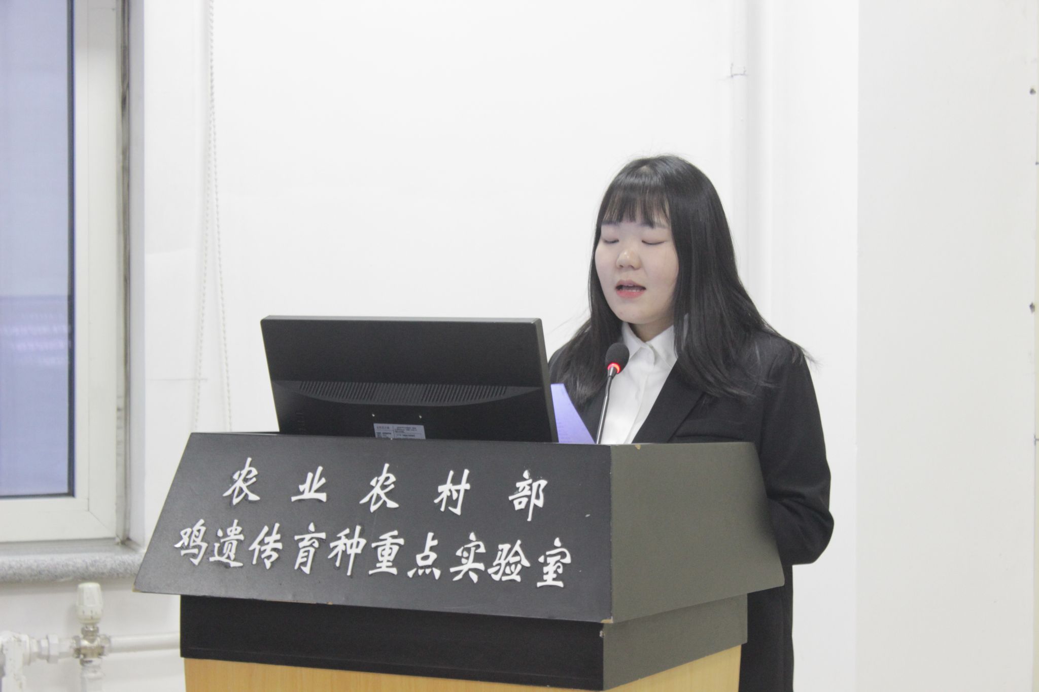 颁奖大会后,召开了第一届“杨山奖学金”获得者工作汇报会,会议由农业农村部鸡遗传育种重点实验室副主任兼秘书王宇祥教授主持。刘帅、刘畅、李小曼、娄明、王浩宇分别作了题为“我与动物遗传育种这三年”“从动物遗传育种到动物生殖,杨山先生精神引领我探索”“东农家禽组予我的成长”“在东农家禽课题组的收获和成长”“薪火相传,砥砺前行--我在东农家禽课题组学习、实践的成果和感悟”的报告,五名获奖者从自身经历、专业认识、未来设想等方面进行详细分享,受到与会专家的一致认可和好评。