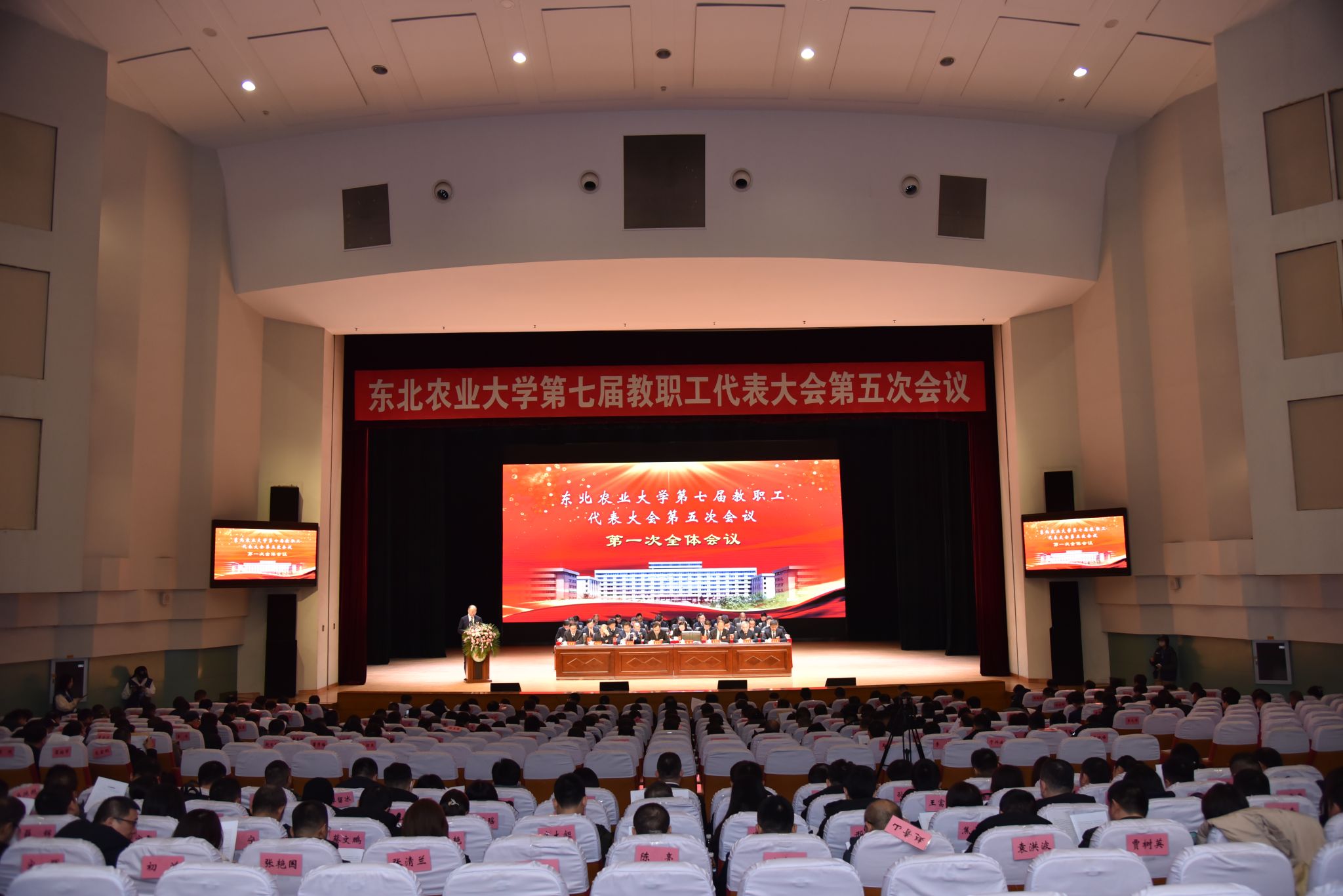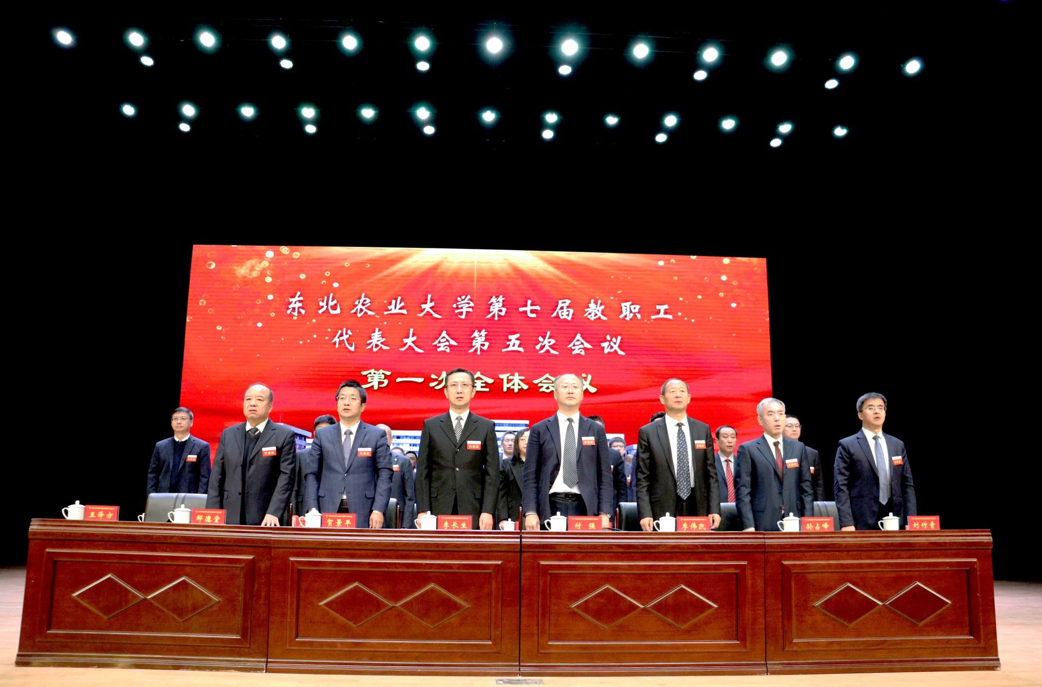 冬去春来,万象更新。3月1日上午,东北农业大学第七届教职工代表大会第五次会议在学校音乐厅举行。来自学校各学院、部、处、办及直属单位的教代会代表、列席代表以及省市人大代表、政协委员、民主党派负责人、高层次人才和部分工人、学生作为特邀人员参加会议。大会执行主席李长生、付强、王泽方、贺景平及主席团全体成员在台上就座。会议由校党委副书记王泽方主持。