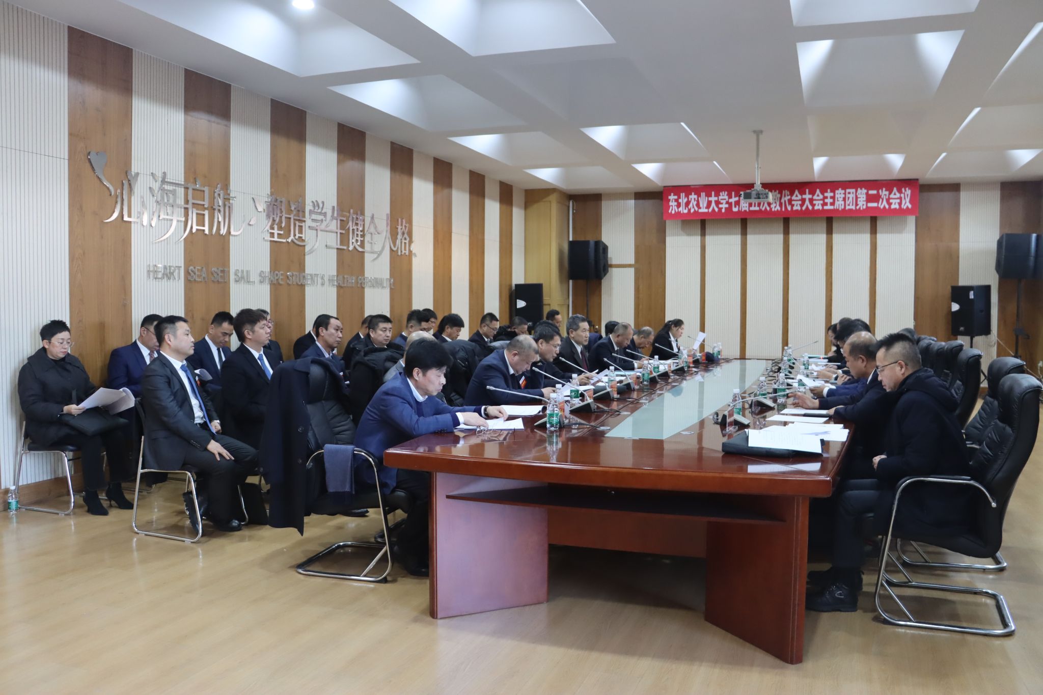 3月1日下午16:00,东北农业大学七届五次教代会主席团第二次会议在音乐厅213会议室举行,主席团全体成员参加会议。会议由校党委书记李长生主持。