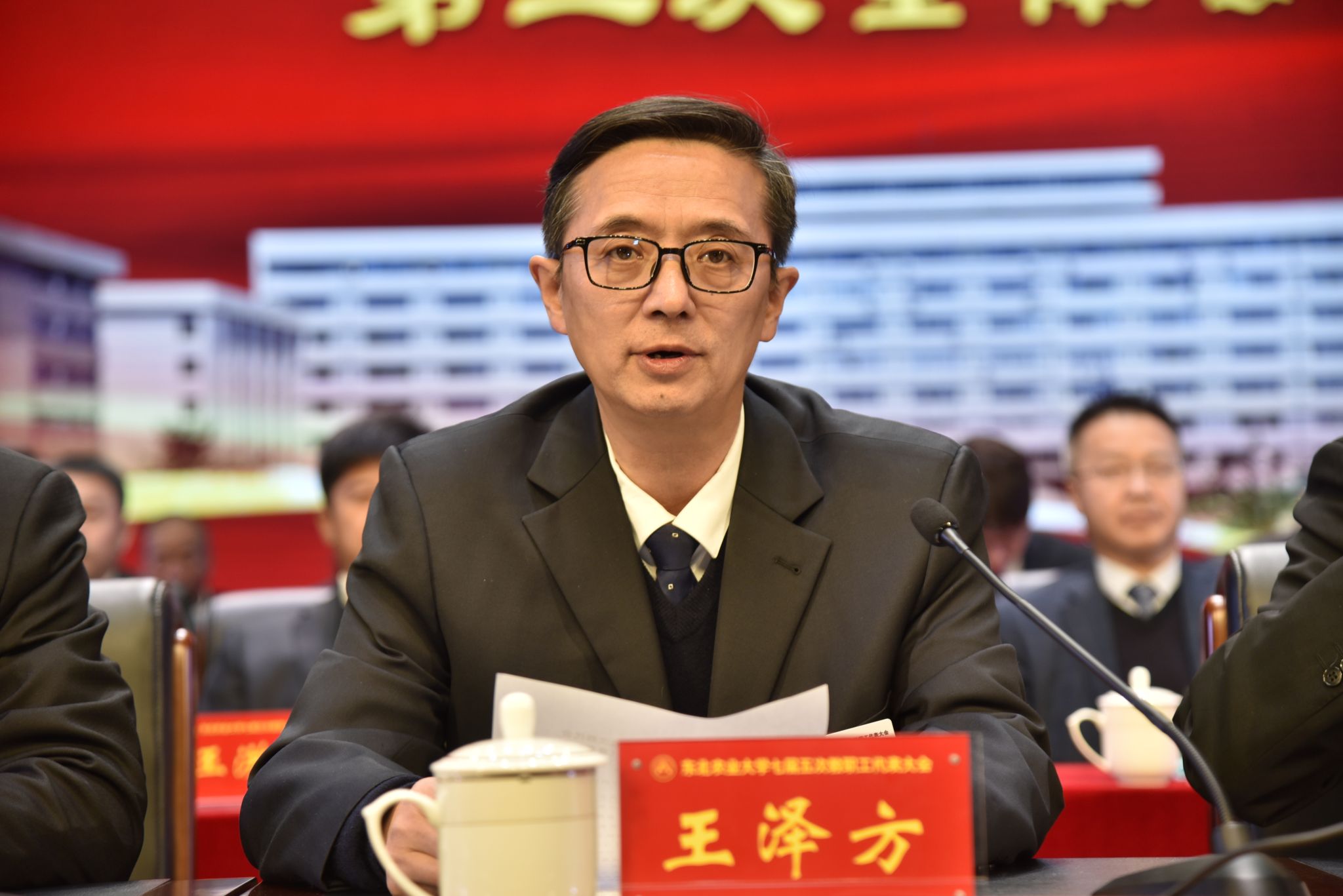 校党委副书记王泽方宣读关于《东北农业大学七届五次教代会学校工作报告》的决议草案