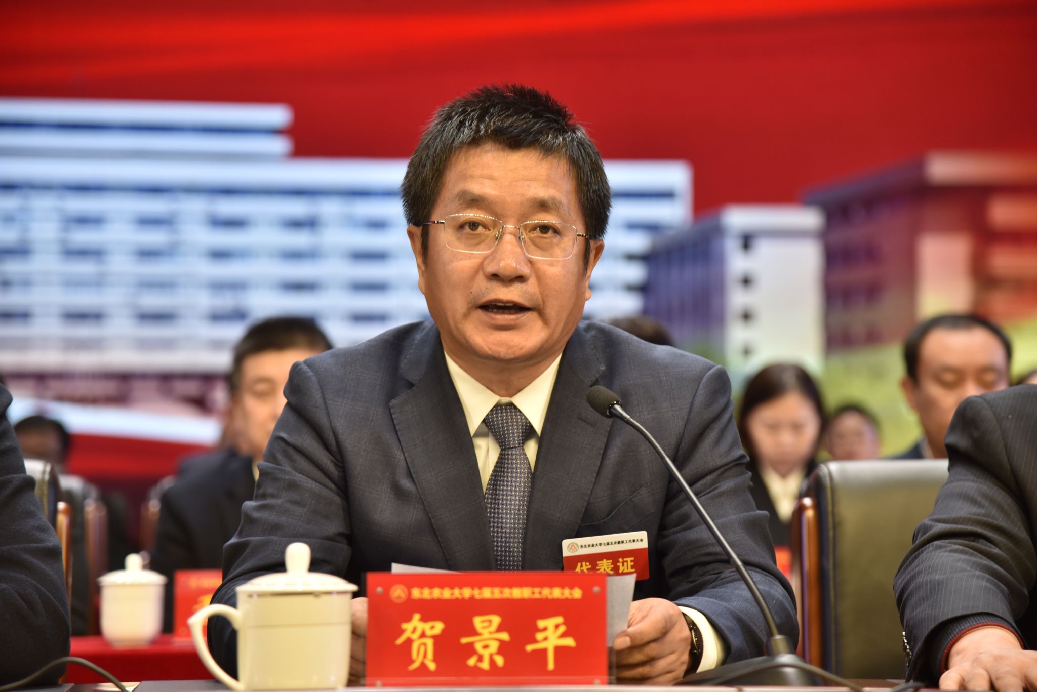 校党委副书记贺景平宣读关于《东北农业大学2023年度财务工作报告》的决议草案