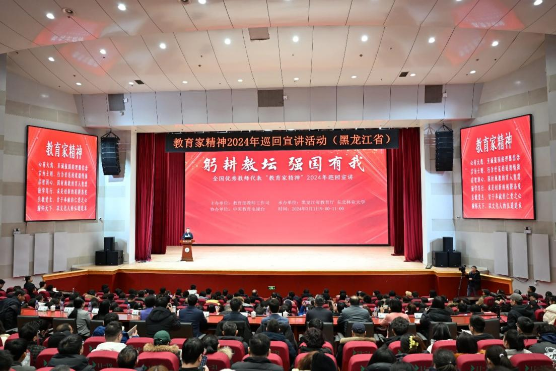 为贯彻落实习近平总书记关于弘扬教育家精神的重要指示精神,以教育家精神引领高素质教师队伍建设,3月1日上午,由教育部主办,黑龙江省教育厅协办的“教育家精神2024年巡回宣讲活动(黑龙江省)”在东北林业大学举行。学校集中组织30名教师代表参加现场宣讲活动,各学院以视频直播方式收看了宣讲。