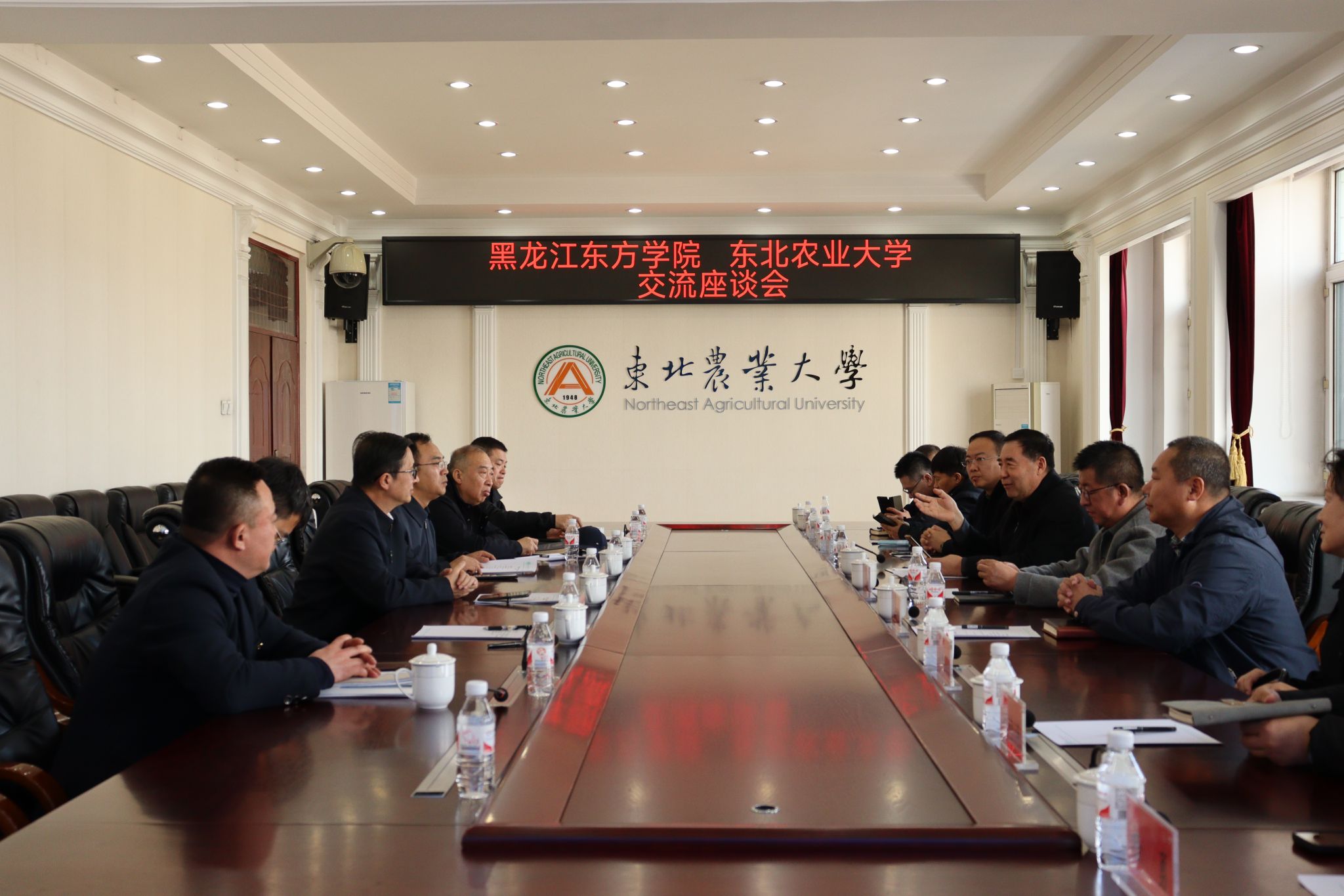 与会双方观看了黑龙江东方学院宣传片《德耀东方》和东北农业大学宣传片《稼穑丰歌》。