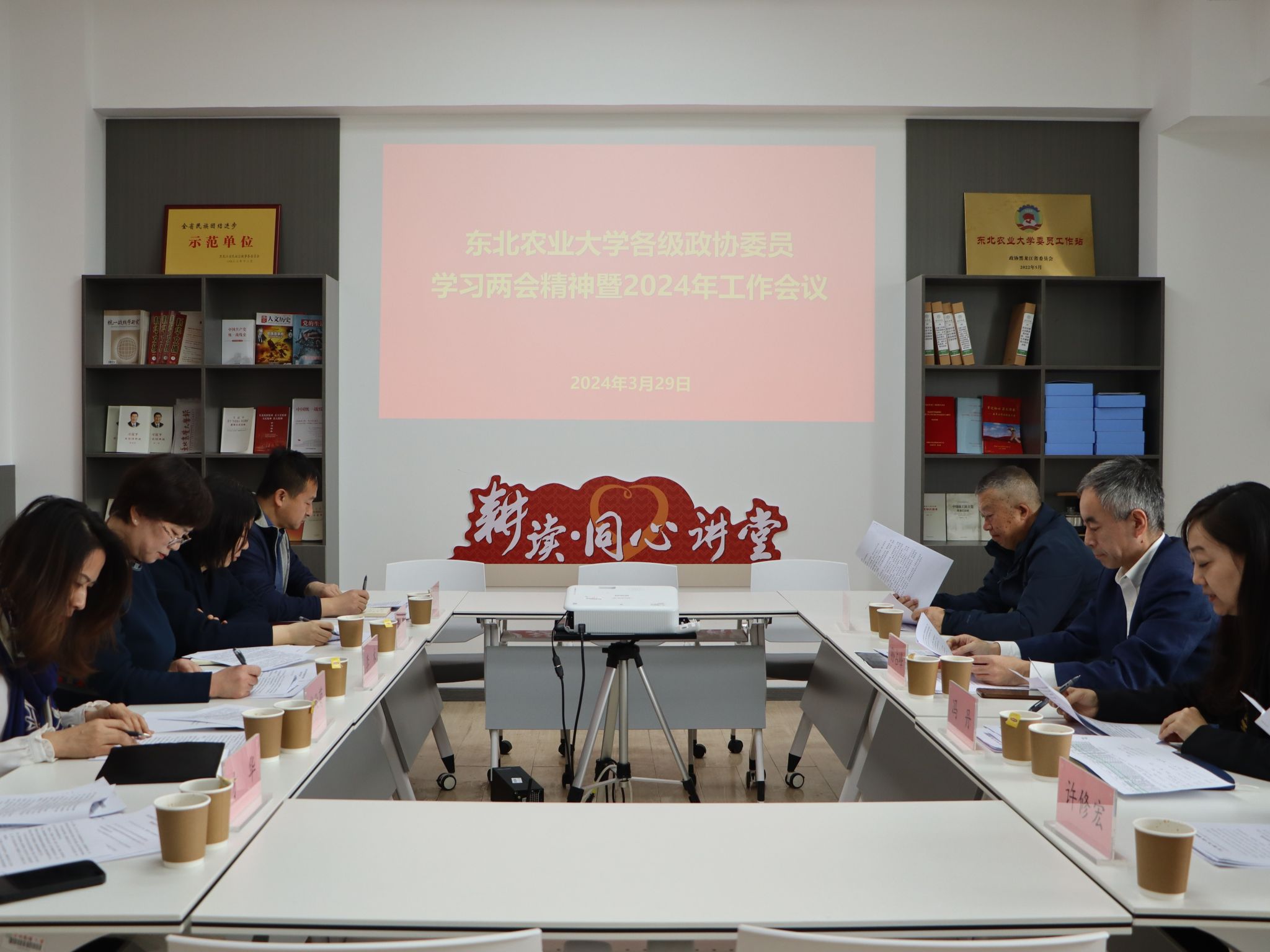 为深入学习2024年全国两会精神,推动学校政协委员工作和统战工作扎实开展,3月29日,东北农业大学各级政协委员学习两会精神暨2024年工作会议在学校政协委员工作站召开。省政协委员、民盟黑龙江省委副主委、学校副校长孙占峰,统战部副部长冯丹,学校部分省、市、区政协委员代表,各民主党派主委及统战部全体工作人员参加会议。会议由冯丹主持。