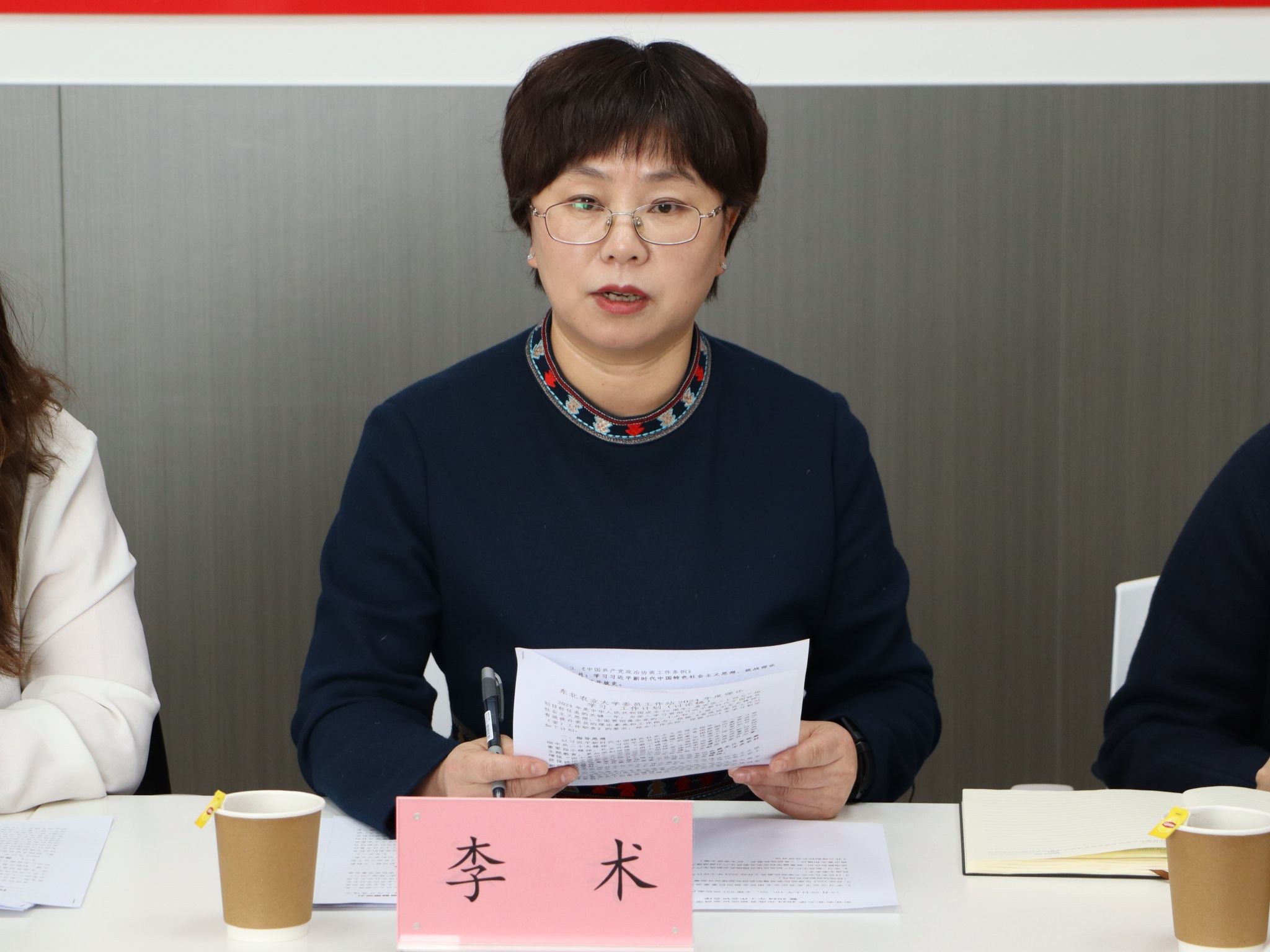 省政协委员、学校民进支部主委李术宣读了《东北农业大学委员工作站2024年度理论学习、工作计划》。