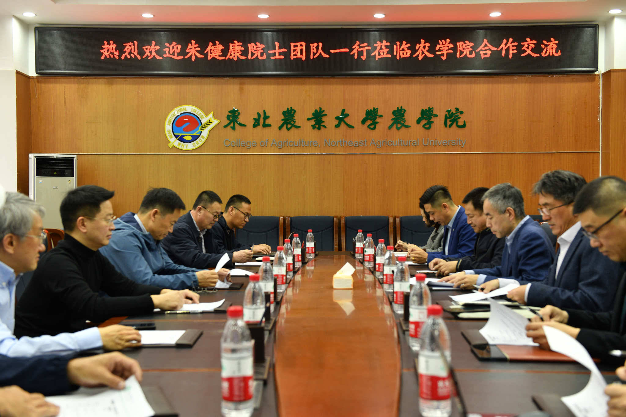 4月2日,美国科学院院士、山东舜丰生物科技有限公司首席科学顾问朱健康教授团队一行到东北农业大学调研,重点对王绍东教授团队的“高附加值功能大豆新品种的研发及其产业化”项目进行考察。香港华源实业集团(黑龙江)有限公司董事长吴章祝,中农发五大连池农业科技有限责任公司总经理李文国,山东舜丰生物科技有限公司副总经理牛小牧等企业负责人参加调研。学校副校长孙占峰,农学院院长陈庆山,社会合作与成果转化中心(新农村发展研究院)党总支书记王伟峰、副主任(副院长)宋珲出席调研活动。座谈会由王伟峰主持。