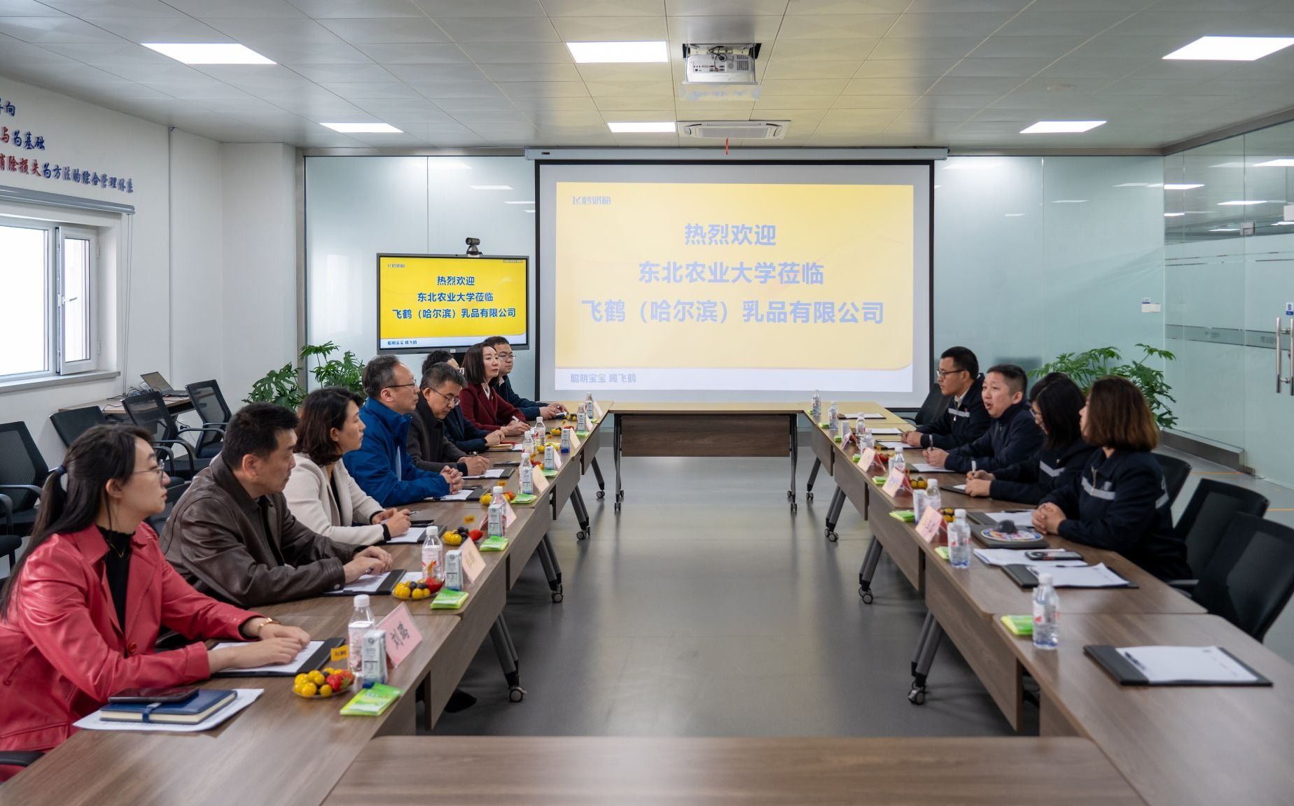 为深入贯彻落实教育部、省教育厅和学校关于开展访企拓岗促就业专项行动的工作要求,进一步拓宽就业渠道,探索联合开展科技攻关及人才培养,深度推进校企合作,4月9日下午,副校长刘竹青,食品学院党委书记潘俊波、院长姜毓君、正处级辅导员崔丽、党委副书记钱芳、副院长李良、乳品科学与工程系主任杜鹏、食品营养与健康系主任刘璐赴飞鹤(哈尔滨)乳品有限公司开展走访调研活动,飞鹤集团副总裁孙建国、生产事业部人事经理张吉坤、飞鹤哈尔滨工厂行政经理张俊清及人事负责人汪玉玺陪同参观并参加座谈会。
