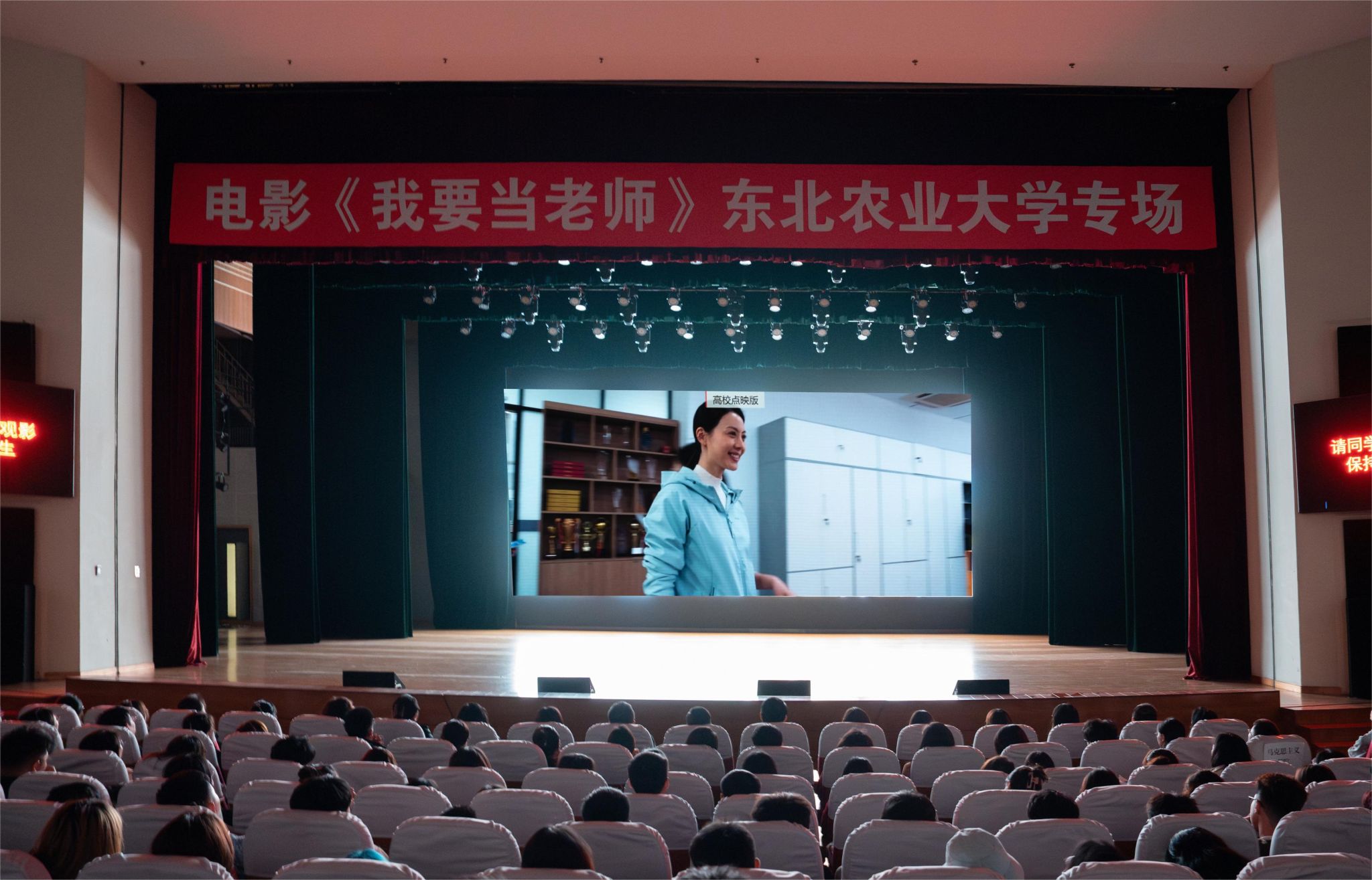 4月16日晚,中国电影史上首部思政课教师题材喜剧故事片《我要当老师》在东北农业大学点映。学校党委副书记贺景平,宣传部、马克思主义学院、学生工作部、校团委等单位负责人及相关同志,思政课教师、辅导员及学生代表等1000余人观看电影,同上一堂“大思政课”。