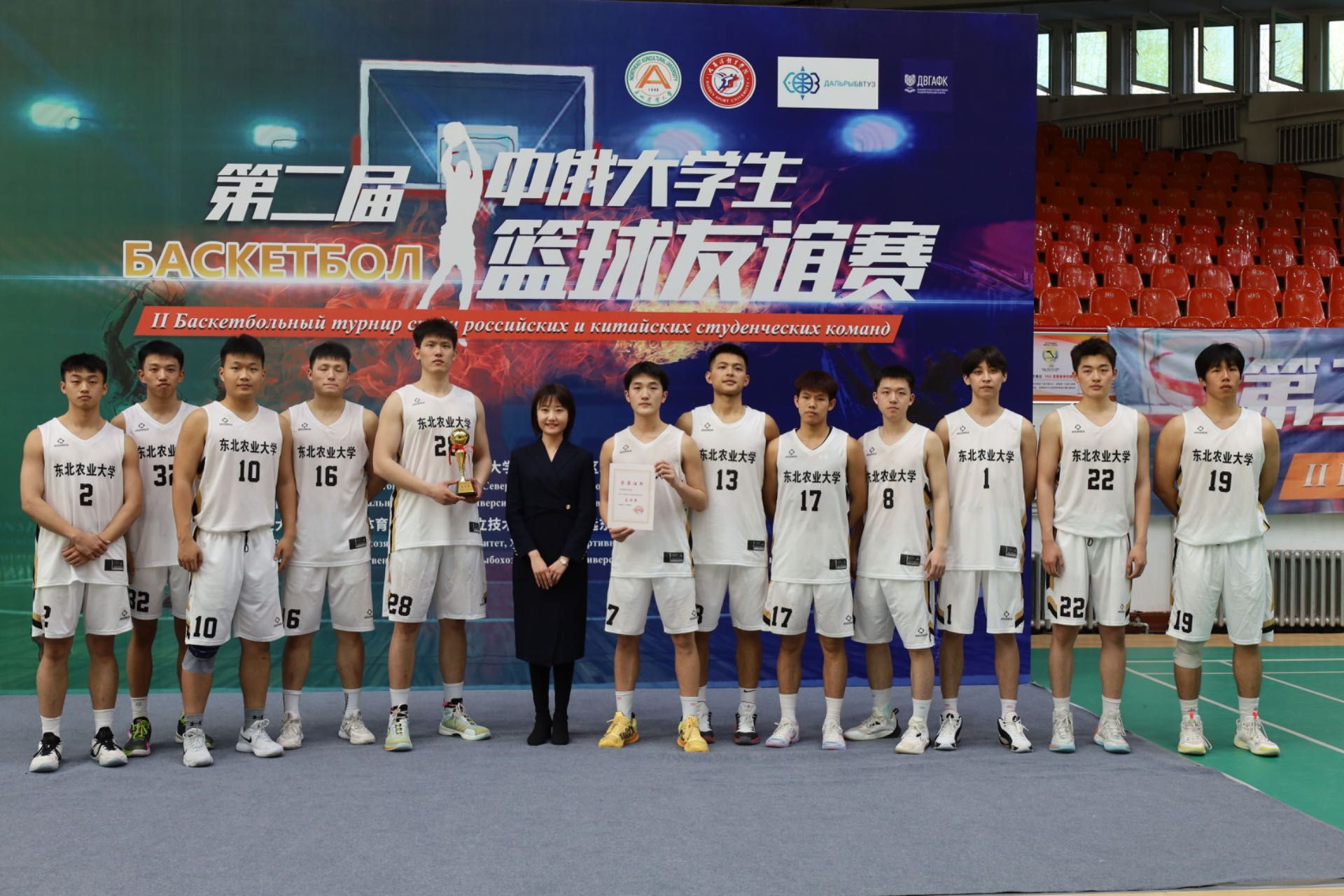 4月18日下午,由中国东北地区与俄罗斯远东及西伯利亚地区大学联盟、中俄区域性冰雪体育大学联盟主办的第二届中俄大学生篮球友谊赛在东北农业大学体育馆圆满闭幕。本次比赛经过6场激烈的角逐,远东国立体育学院男子篮球队荣获冠军,远东国立技术水产大学男子篮球队荣获亚军,东北农业大学男子篮球队和哈尔滨体育学院男子篮球队荣获友谊奖。