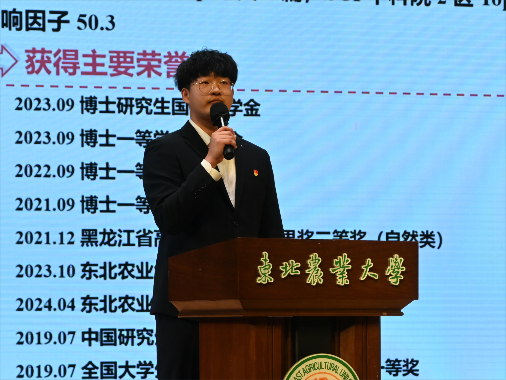 博士研究生国家奖学金获得者食品学院闫世长和同学们分享了六年前来到东农求学后,从投稿N次被拒的科研小白到参与国际产学研合作的学术新秀,立志扎根东农、奉献龙江的人生选择。