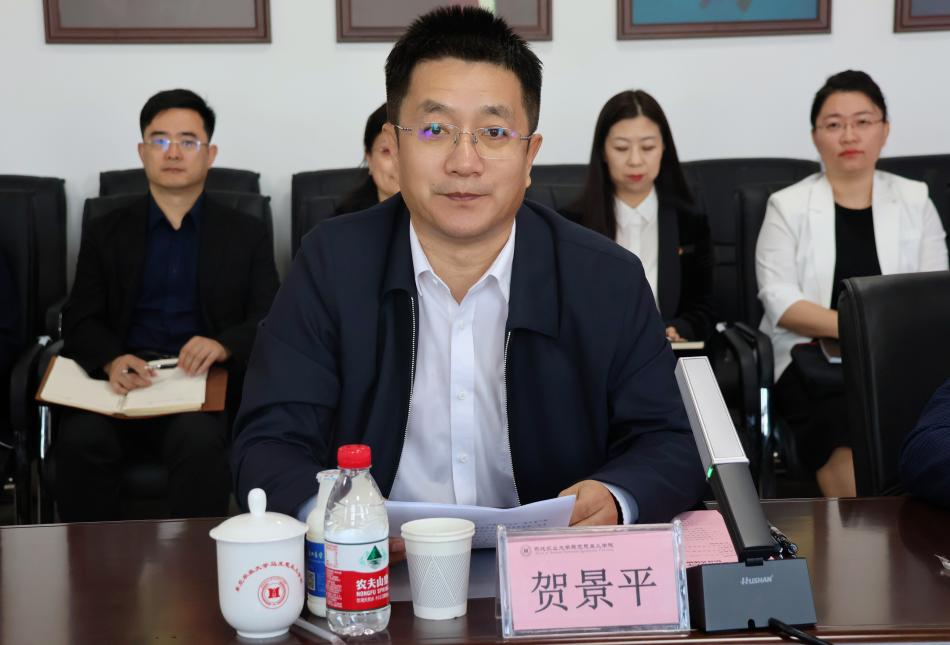 贺景平在会上致欢迎辞。他代表学校对本次结对共建签约仪式的成功举行表示热烈祝贺,对与会嘉宾学者表示诚挚欢迎。同时,向各位专家长期以来对东农马院在人才培养、科学研究、学科建设等各项事业发展的关心和支持表示感谢。他表示,与南京师范大学马克思主义学院结对共建,这不仅是贯彻落实习近平新时代中国特色社会主义思想、聚焦习近平新时代中国特色社会主义思想的研究阐释,着力打造马克思主义理论教育教学、研究宣传和人才培养坚强阵地的务实之举,也是促进积极探索马克思主义理论教育教学规律、学科发展规律和人才培养规律,切实肩负起为党育人、为国育才的重要职责和光荣使命,努力培养德智体美劳全面发展的社会主义建设者和接班人的有力措施。希望通过结对共建,充分发挥南师大马院作为全国重点马克思主义学院的示范引领作用,指导东农马院在学科建设、课程建设、队伍建设、教育教学、科研创新等方面深入开展工作,助力东农马院实现高质量发展。