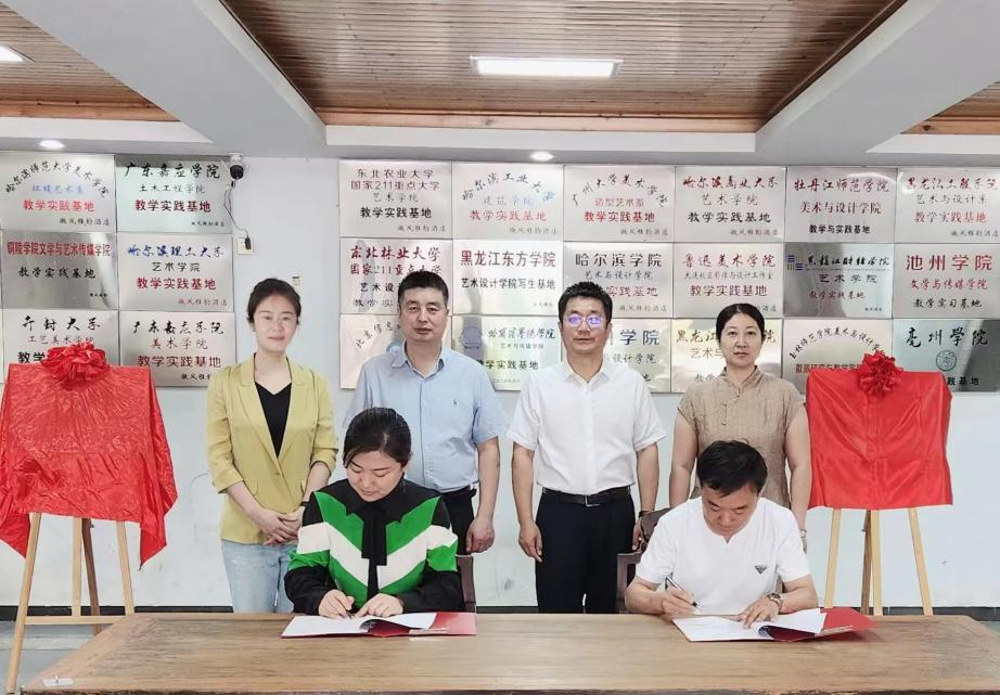 走访期间,贺景平、艺术学院党委书记于向国、院长刘丹、副院长郭弘、学院党委副书记宁峥嵘一行赴黟县宏村进行调研考察,对宏村新华写生基地建设情况进行了深入了解,与宏村新华写生基地签订本科教学实习实训基地协议,并为学校本科实习实训基地和美育实践基地揭牌。他指出,宏村是被联合国教科文组织列入世界文化遗产名录的中国传统村落的典型代表,也是保存较完好的徽式古建筑群,整个村落与周围环境体现出中国传统天人合一、尊重自然的思想。这里建设比较成熟,是全国艺术院校师生集中的写生和艺术创作基地,学生们在这样的环境中开展艺术文化调研和创作是非常必要的,在技法训练的同时一定能够启迪学生艺术思维,围绕中国传统文化展开更多的艺术创作实践。更重要的是,教师们在这里授课时更要将习近平生态文明思想贯穿教学始终,引导学生在创作中体现人与自然和谐共生,培养他们敬畏自然、尊重自然、顺应自然、保护自然的思想。他强调,师生外出实习调研,最重要的就是安全问题,希望基地负责人能够在师生实习调研期间给与充分重视,将学生饮食安全放到首位,把住宿环境建设好,为师生教学创作提供良好的环境。