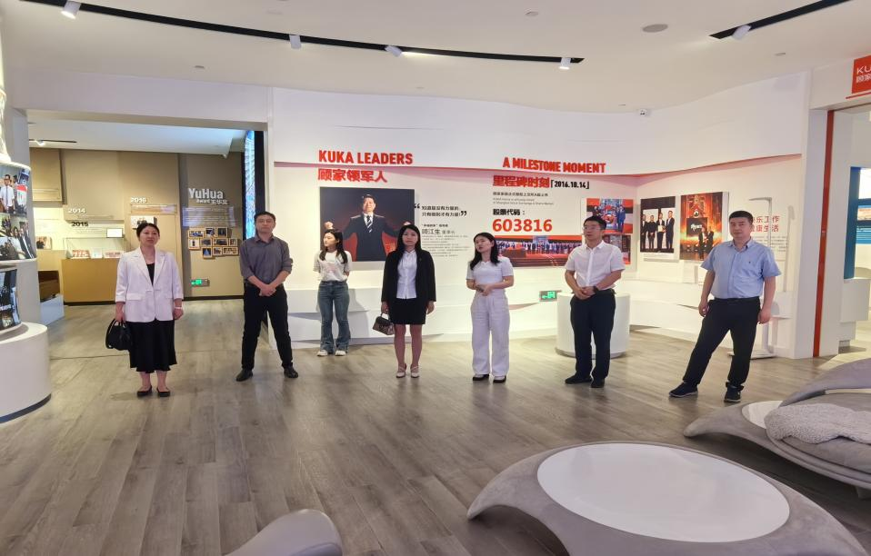 在顾家家居股份有限公司,贺景平一行参观了顾家家居企业文化馆。学校校友宋京鸽详细介绍了顾家家居的发展历程、企业文化、未来发展战略方向以及企业的人才需求等情况,重点强调了企业对艺术设计类毕业生的需求,希望学校能够多推荐这方面的毕业生。贺景平在交流过程中对我校毕业生在企业工作的优秀表现表示赞赏和祝贺,同时邀请校友多回学校交流,推动校企多方面合作。