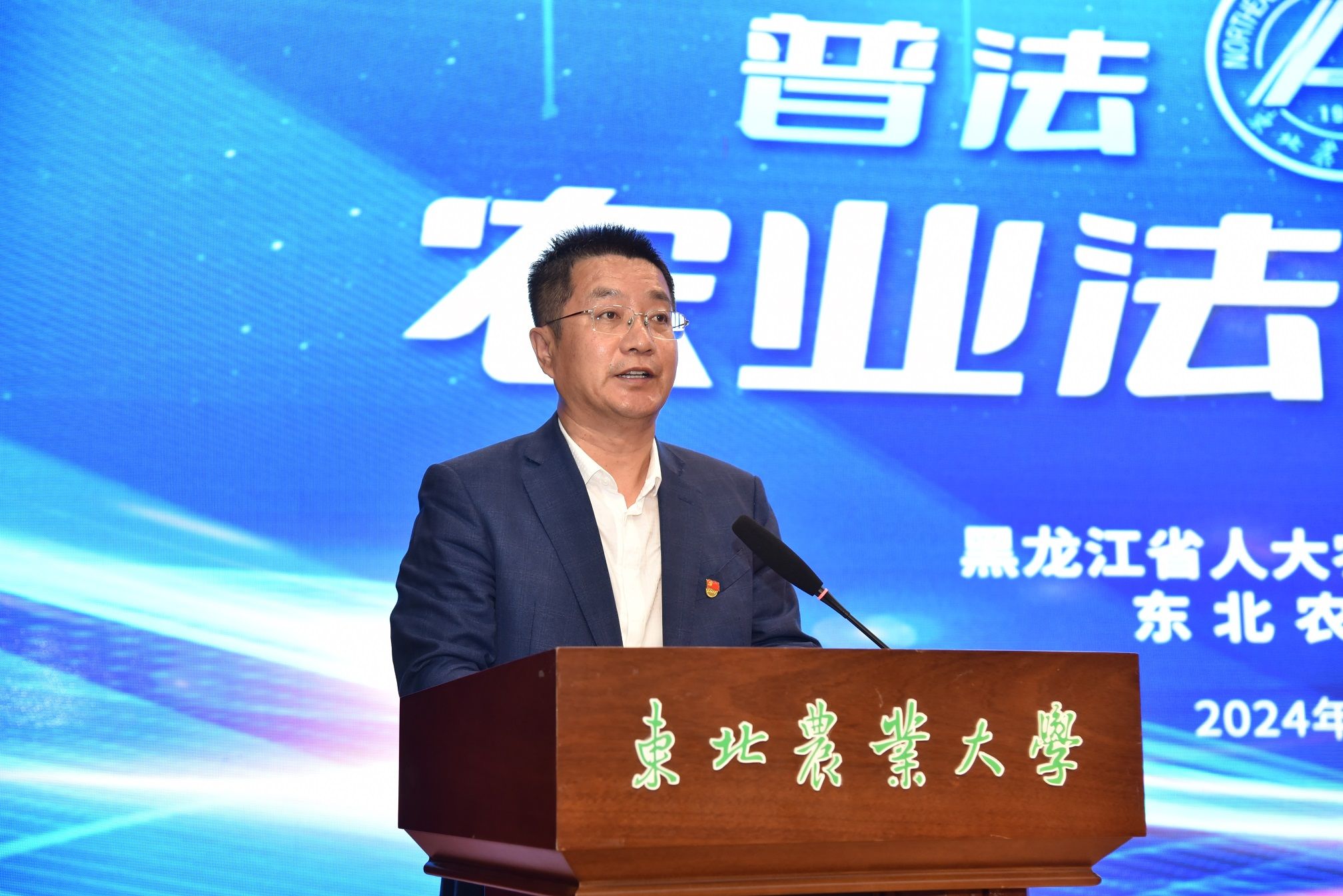 荣丽颖为普法宣传活动致辞。她表示,东北农业大学是国家“双一流”建设高校、黑龙江省与农业部共建高校,是我省头部农业院校和卓越农林人才教育培养基地。与东北农业大学共同开展农业法普法宣传进校园活动,是寄希望于最年轻最杰出的农业工作者群体,让法治成为龙江农业发展核心的竞争力。本次“农业法普法宣传进校园”活动,是深入学习宣传贯彻习近平新时代中国特色社会主义思想,特别是习近平法治思想、关于“三农”工作重要论述,坚决贯彻习近平总书记对我省重要讲话重要指示精神,认真落实党中央关于全面依法治国决策部署,贯彻落实全国人大常委会法治宣传教育决议的一项具体举措,是大力弘扬法治精神,持续提升公民法治素养和社会治理法治化水平,形成全社会尊法学法守法用法良好氛围的实际行动,希望与东北农业大学共同努力,运用法治思维和法治方式加快建设农业强省、推进龙江农业现代化,奋力开创龙江高质量发展、可持续振兴的新局面。