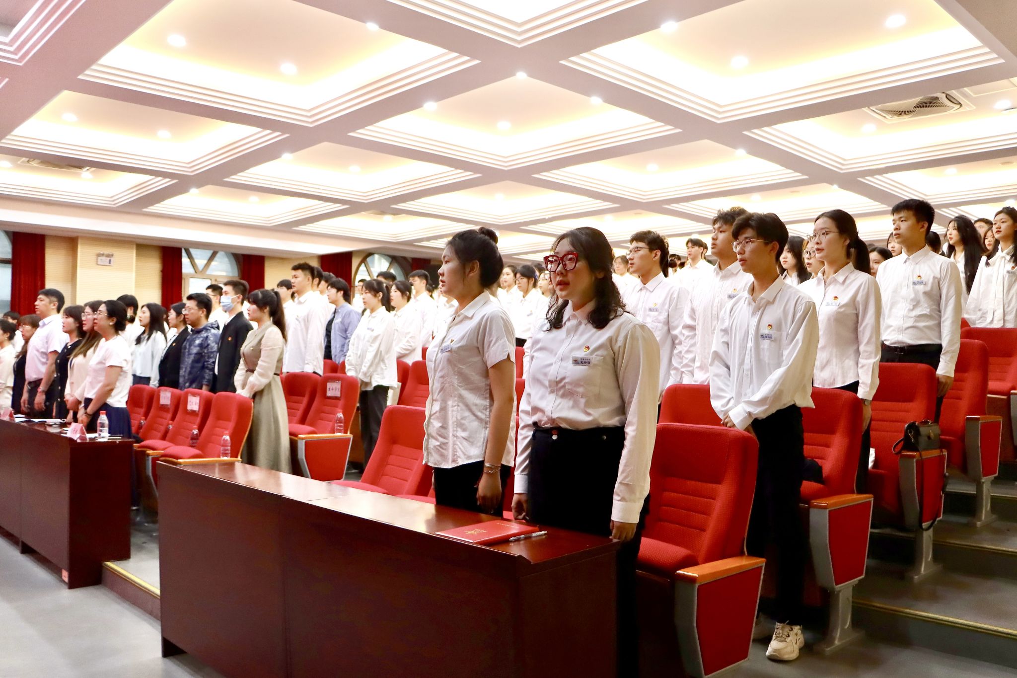 青马工程学员代表、校学生会主席团成员金宇含带领全体学员宣誓